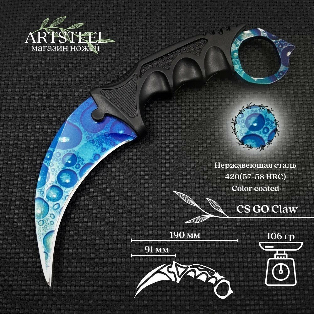 Керамбит ArtSteel "CS GO", нержавеющая сталь, 106 гр, 90 мм, синий