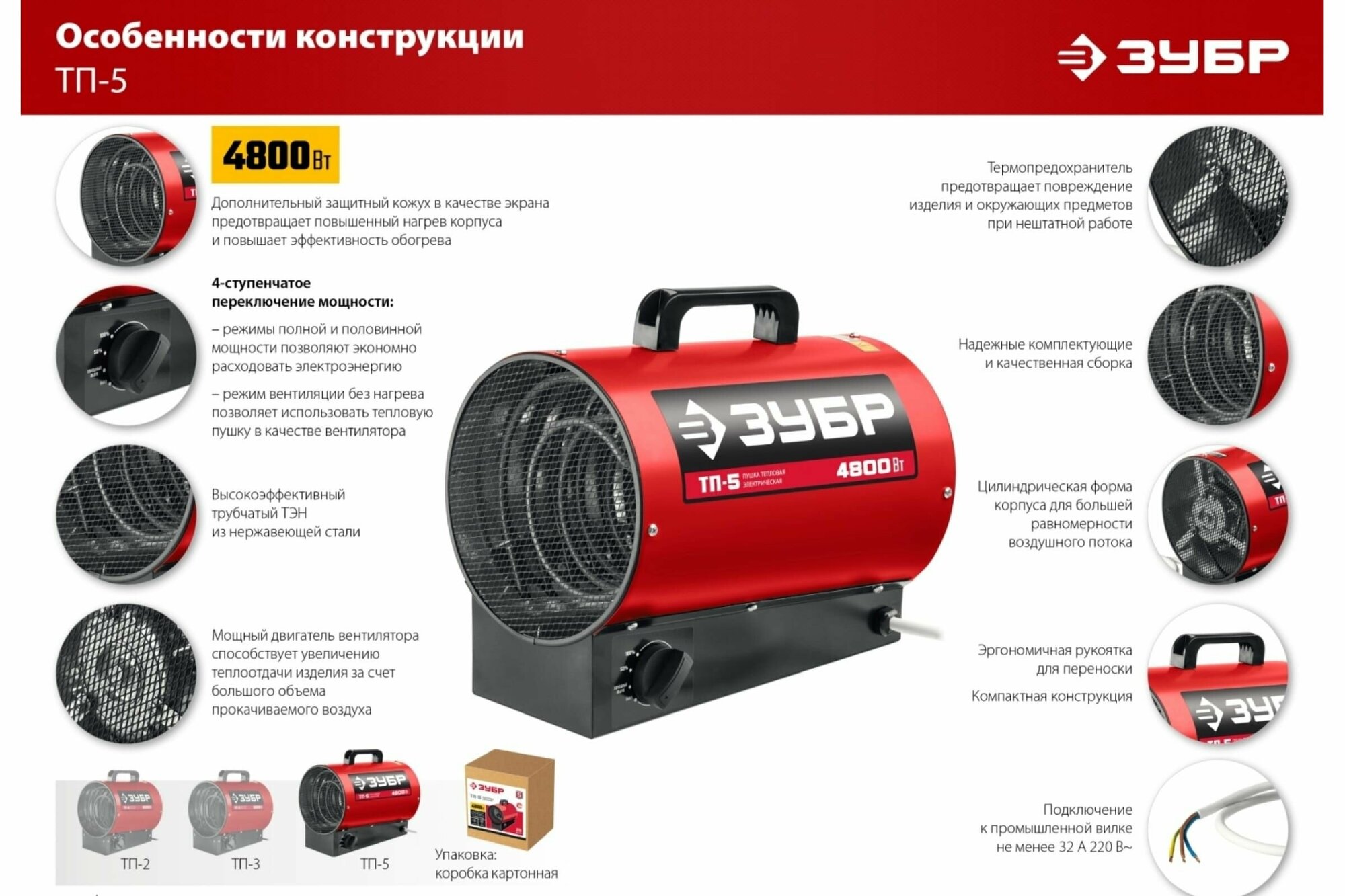 ЗУБР 5 кВт, электрическая тепловая пушка (ТП-5) интересное: