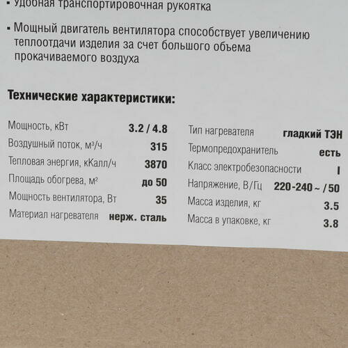 | Площадь обогрева | 50 м² |
