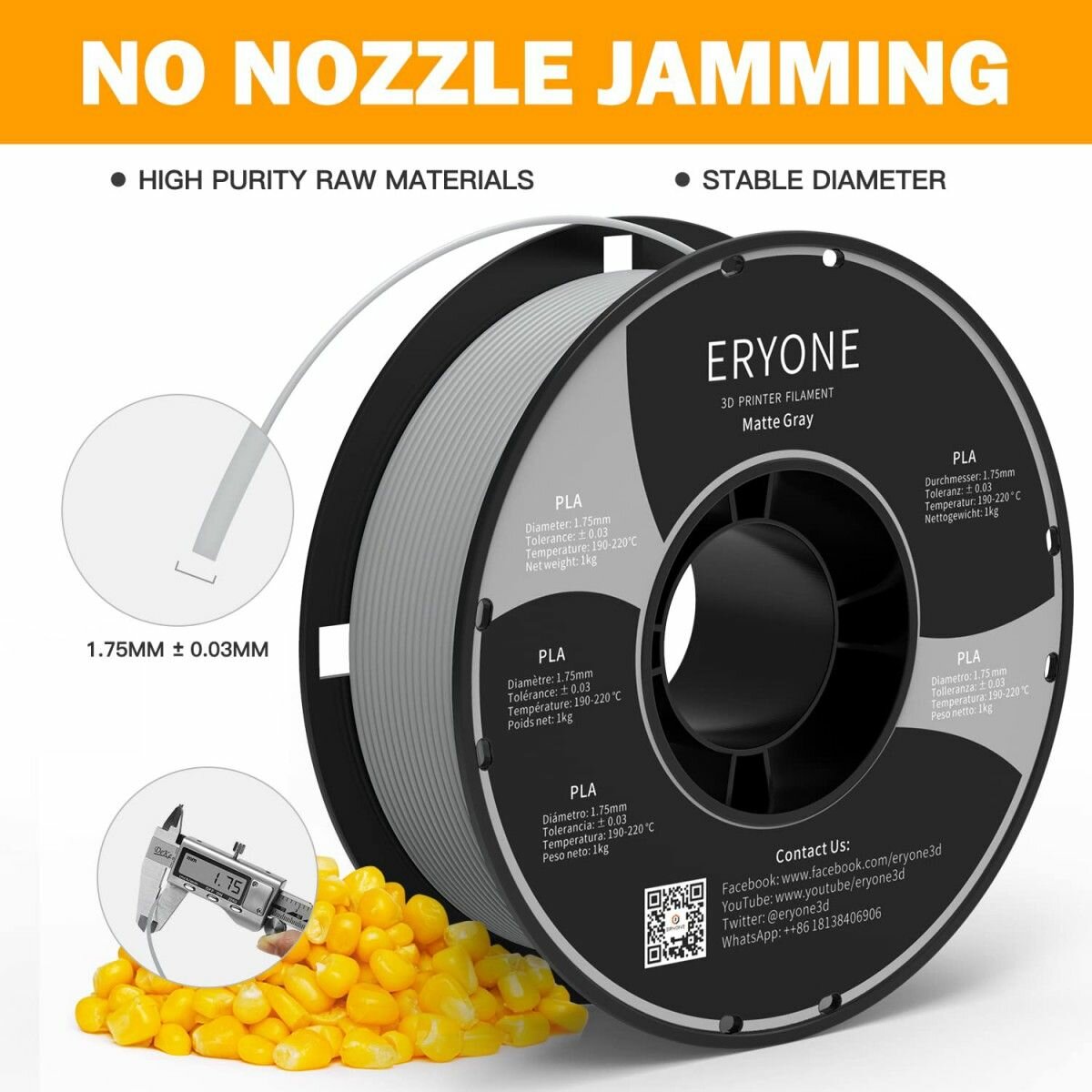 Матовый PLA пластик 1,75 мм 1 кг (Eryone) Серый интересное: