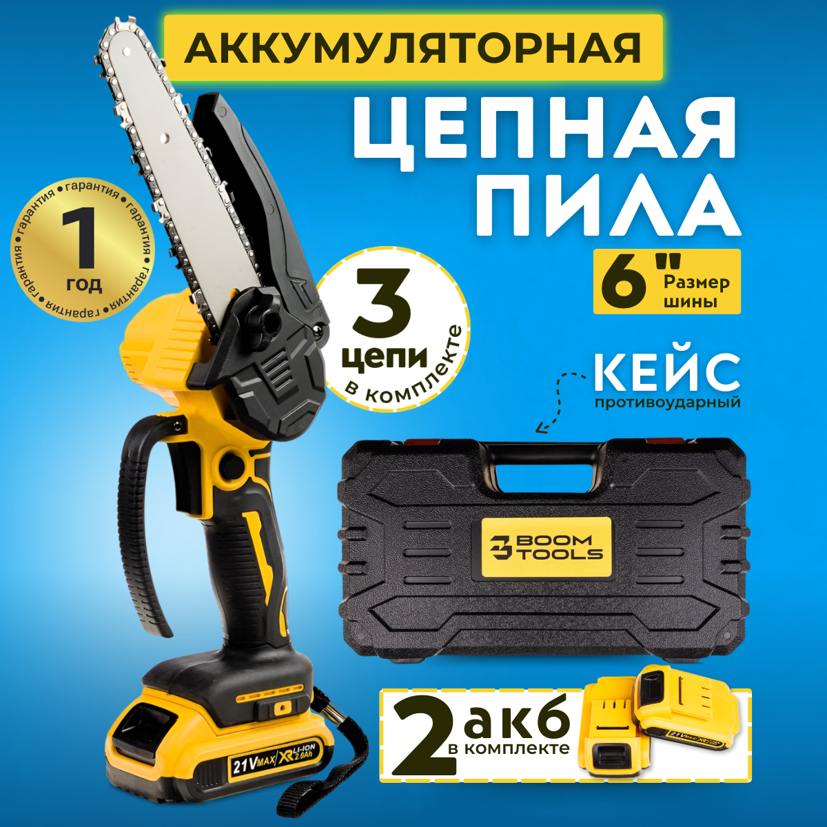 Пила аккумуляторная цепная мини BOOM TOOLS. В комплекте 2 аккумулятора и кейс. интересное: