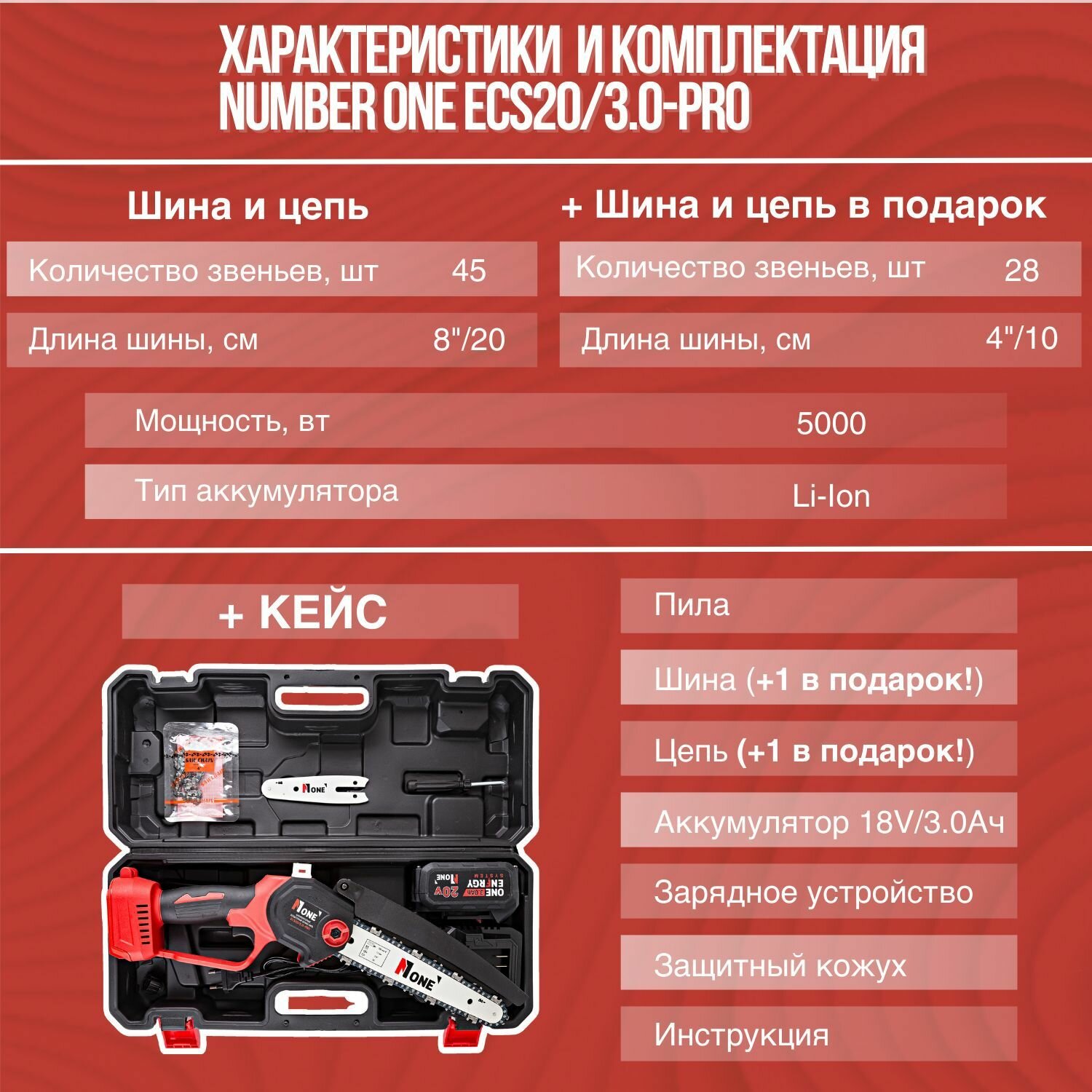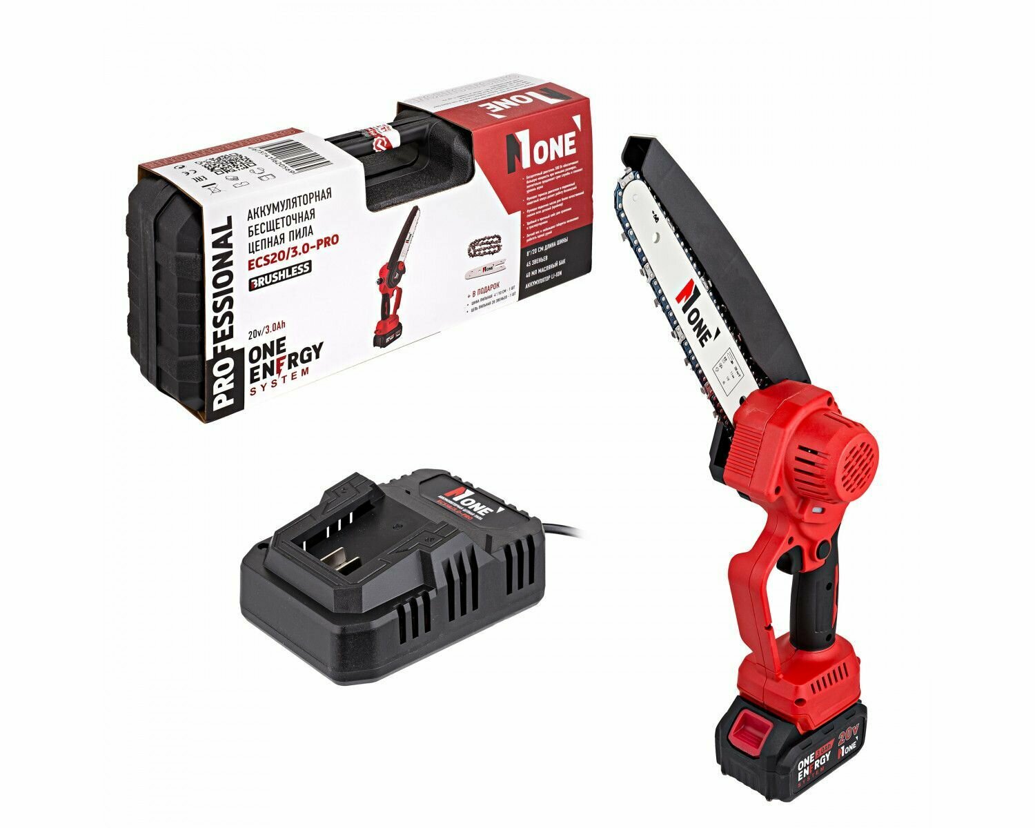 Пила цепная аккумуляторная бесщеточная NUMBER ONE ECS20/3/0-PRO (с АКБ, ЗУ, кейсом)