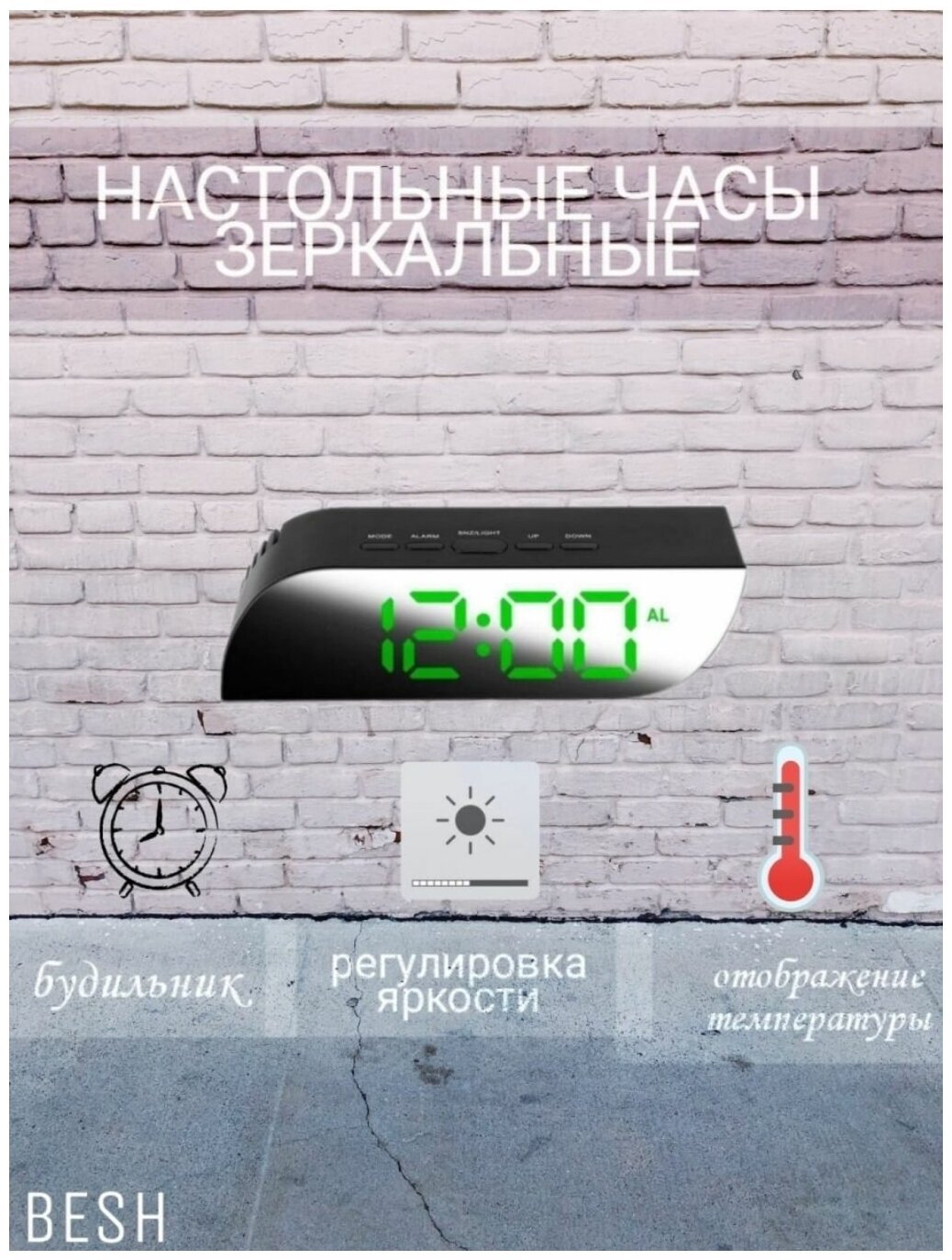 Настольные светодиодные часы с будильником DT-018 черный с зелеными цифрами интересное: