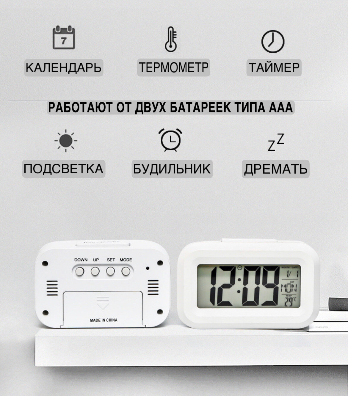 | Дополнительная информация | Часы с будильником с термометром с подсветкой |