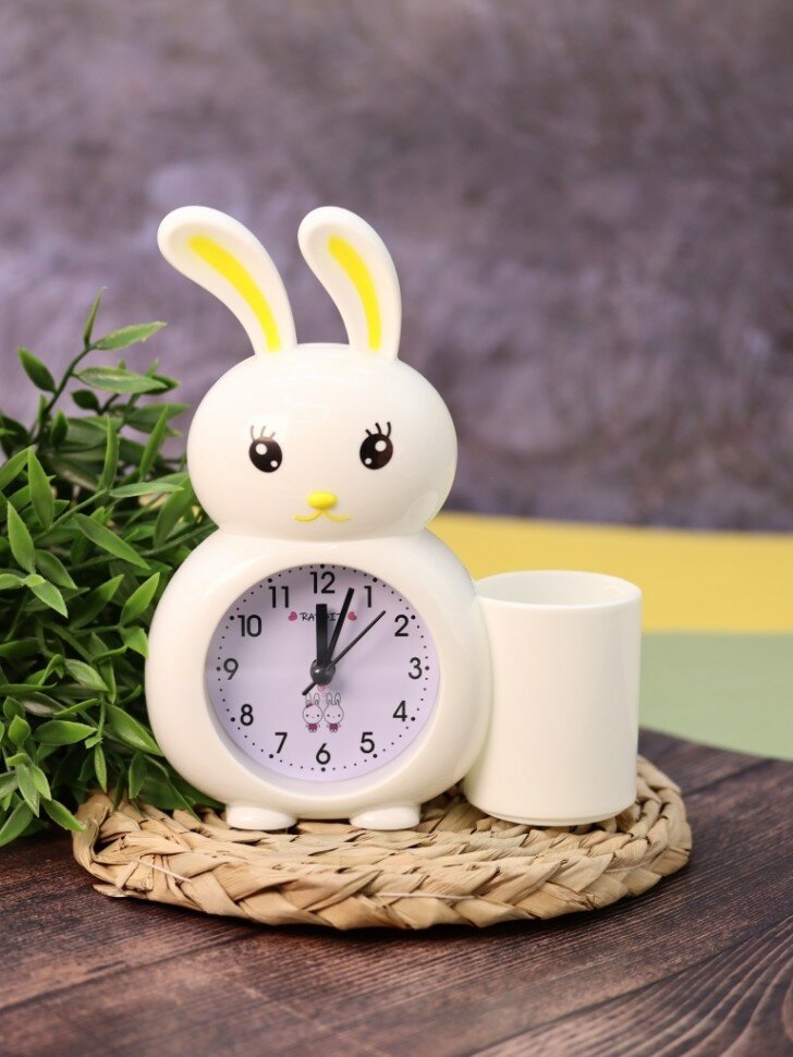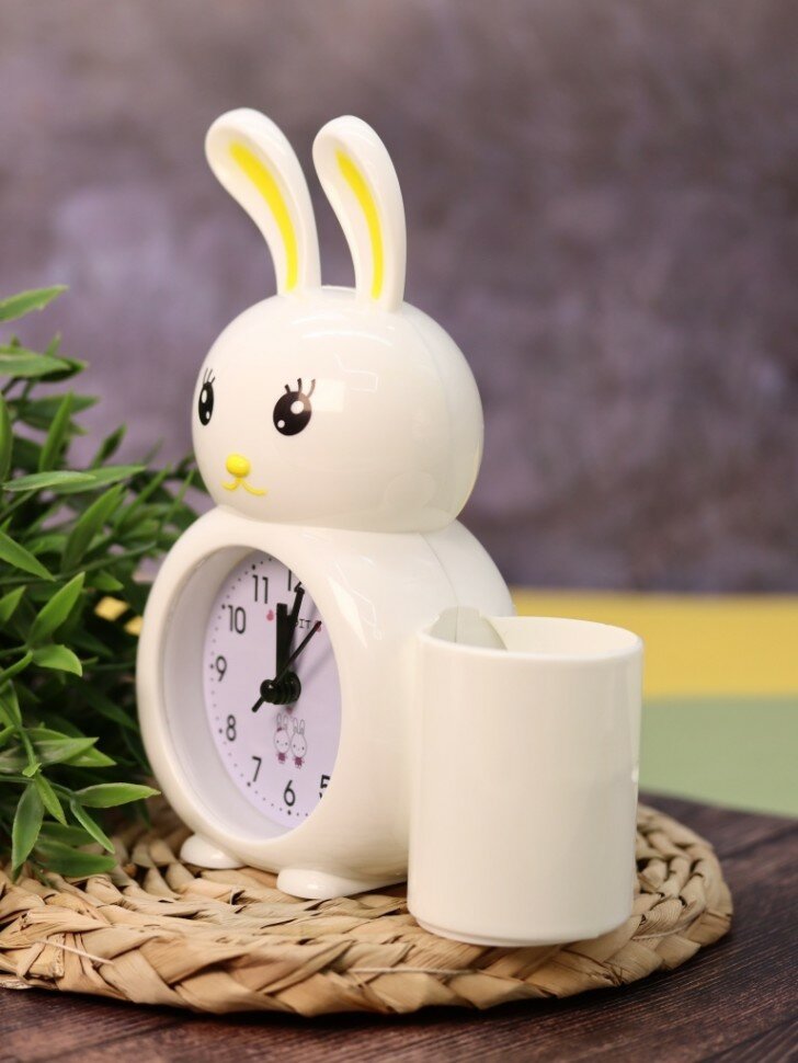 Часы-будильник с подставкой для канцелярии «Bunny Buzz», white интересное: