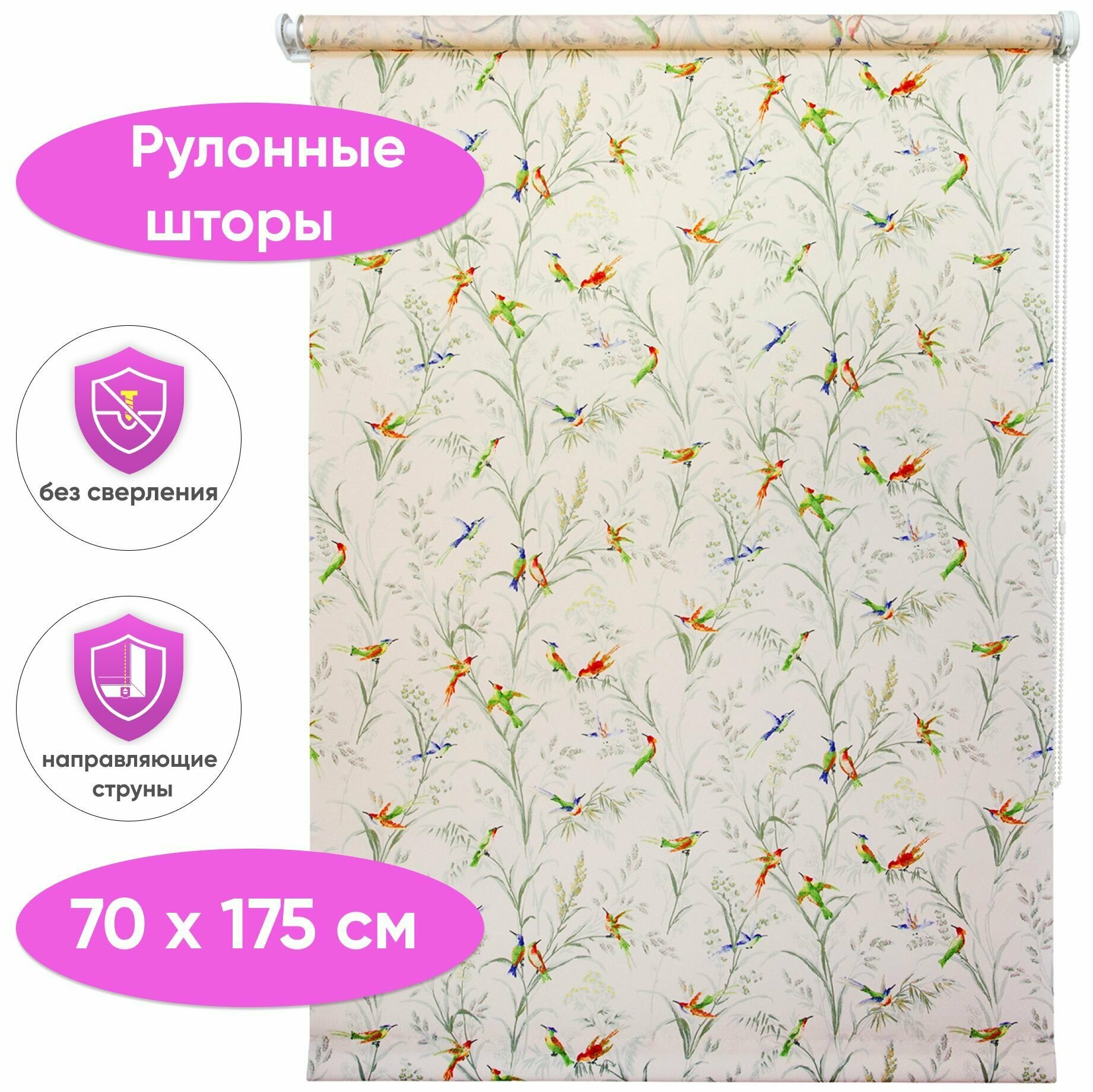 Рулонные шторы с рисунком цветов 70 x 175 см Жалюзи на окна с фотопечатью принта "Вермонт" белый