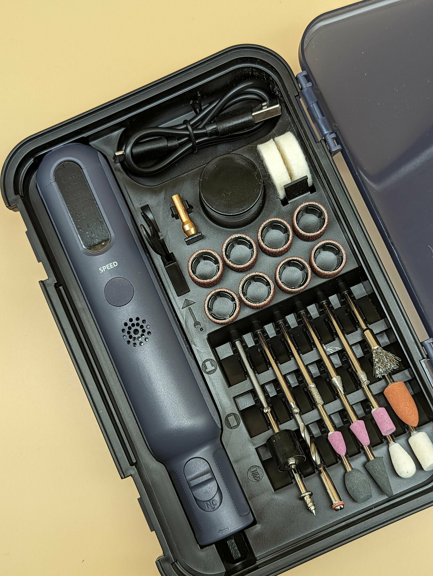 Аккумуляторный гравер Grawerk MGE 4.2V в кейсе, 4.2 Вольта, зарядка от USB, набор насадок 140 шт.