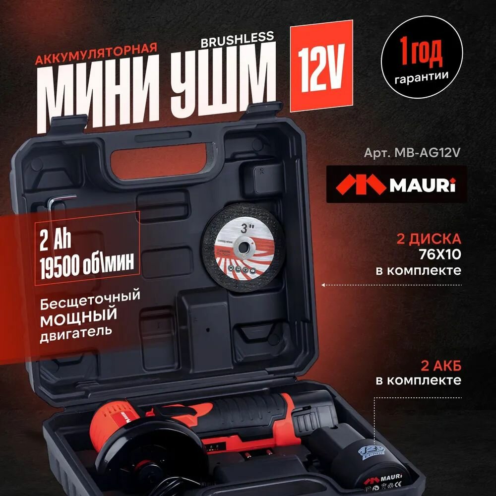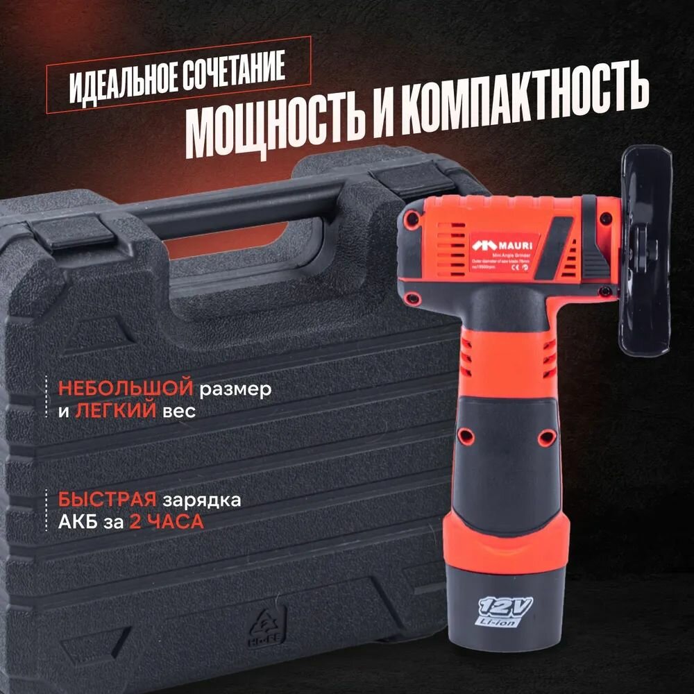 Купить Аккумуляторная мини УШМ Mauri 12V Brushless 2,0 А/ч