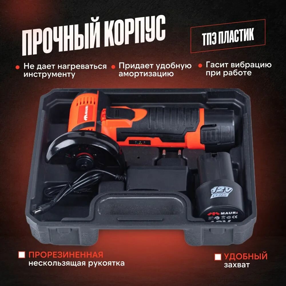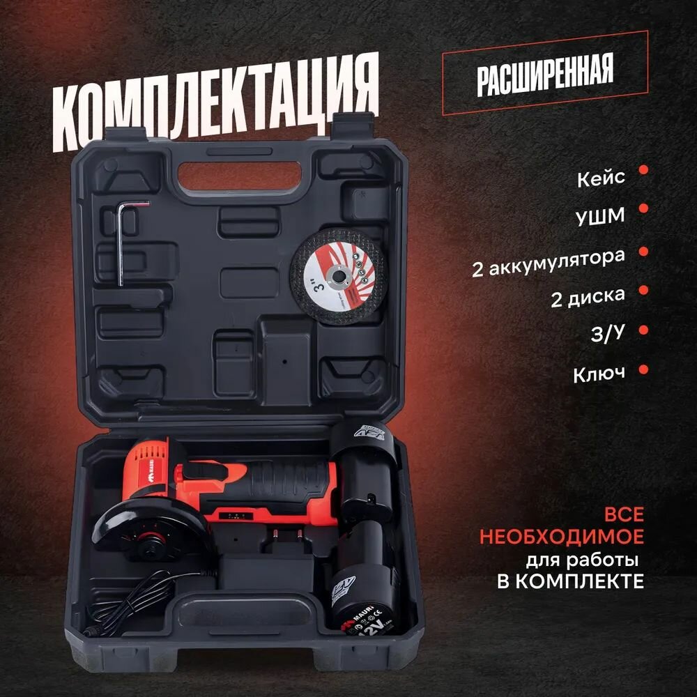 Аккумуляторная мини УШМ Mauri 12V Brushless 2,0 А/ч интересное: