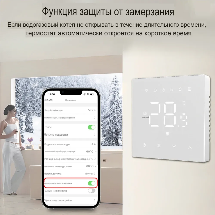 Умный WiFi терморегулятор термостат с Алисой для теплого пола Tuya / Smart Life / Digma c голосовым управлением для умного дома белый серый интересное: