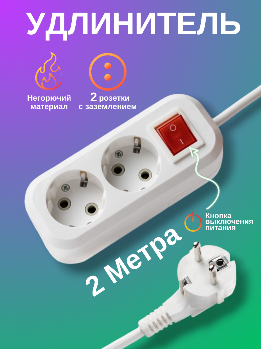 Сетевой фильтр удлинитель с выключателем - 2 розетки, 2 метра, заземление интересное:
