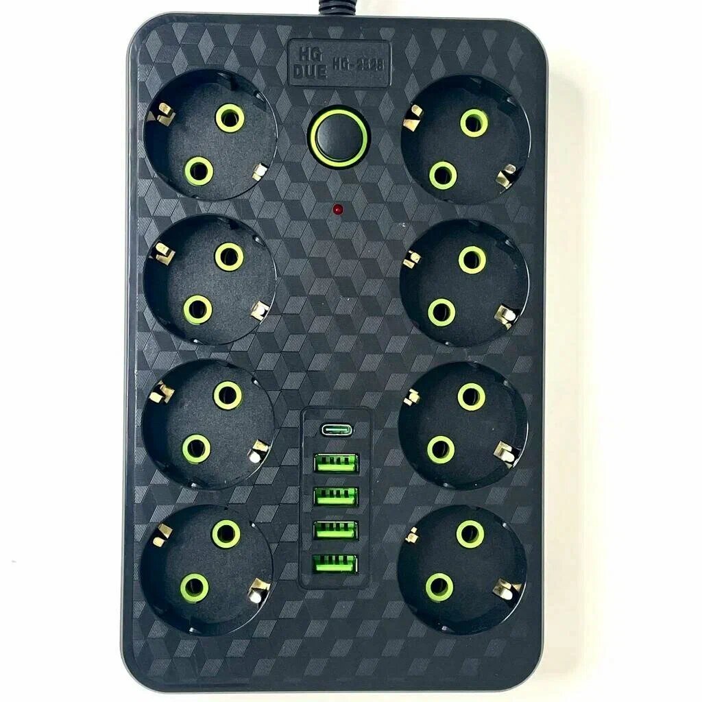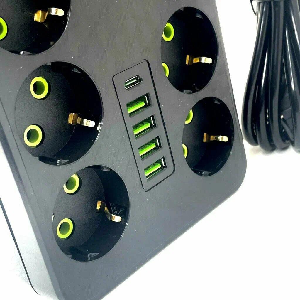 Сетевой фильтр 2606 с 6 розетками 2USB + 1 Type-C / Многофункциональный удлинитель с предохранителем