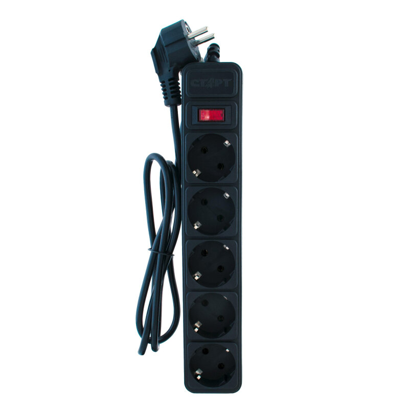 Сетевой фильтр с предохранителем 1.5м 5 розеток старт удлинитель бытовой с заземлением, защита от перегрузки и скачков напряжения