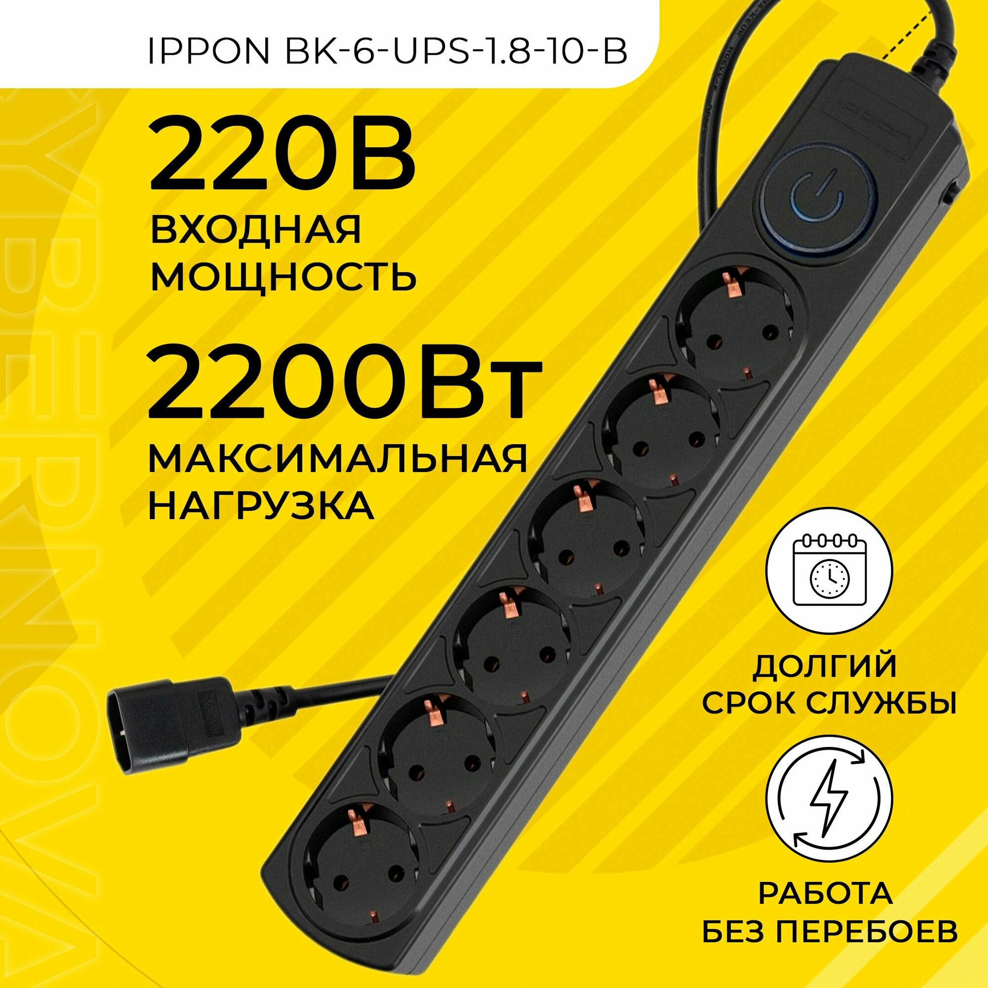 Купить Сетевой фильтр Ippon BK-6-UPS-1.8-10-B 1.8м (6 розеток) черный (коробка)