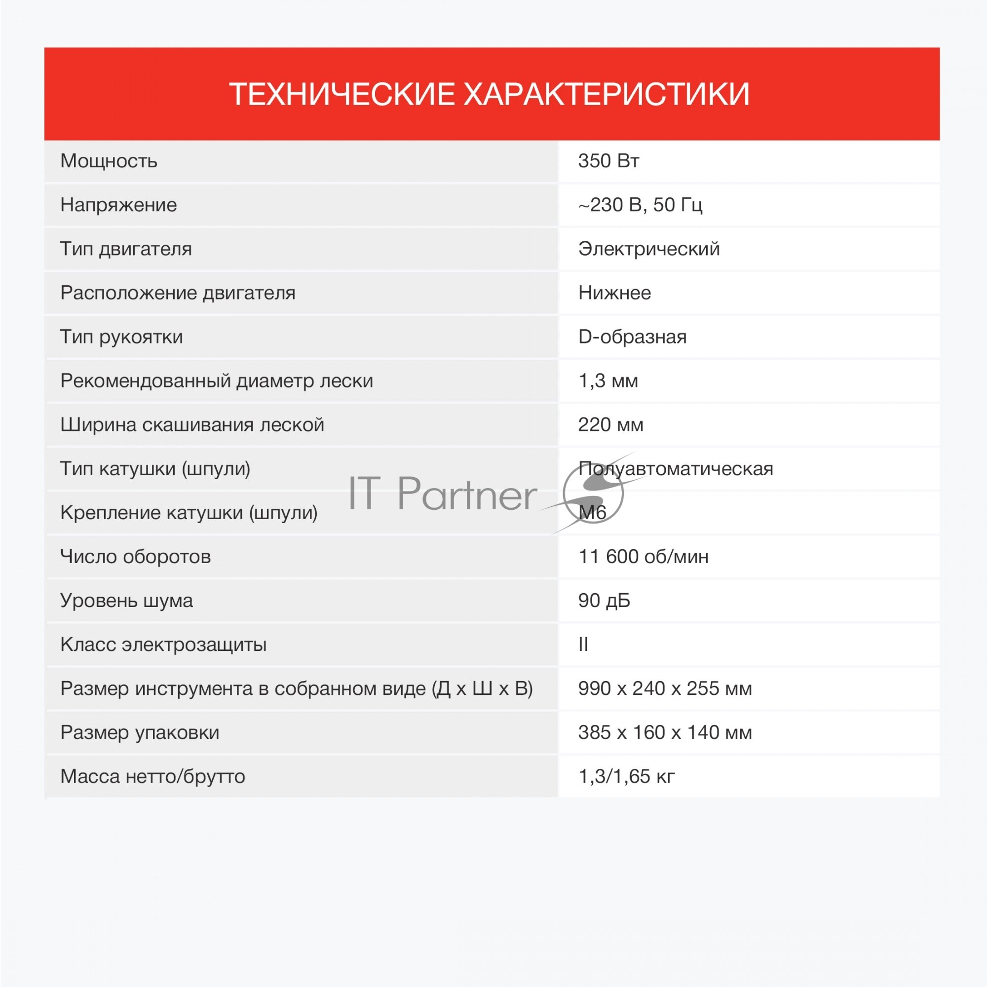 | Мощность электродвигателя | 350 Вт |