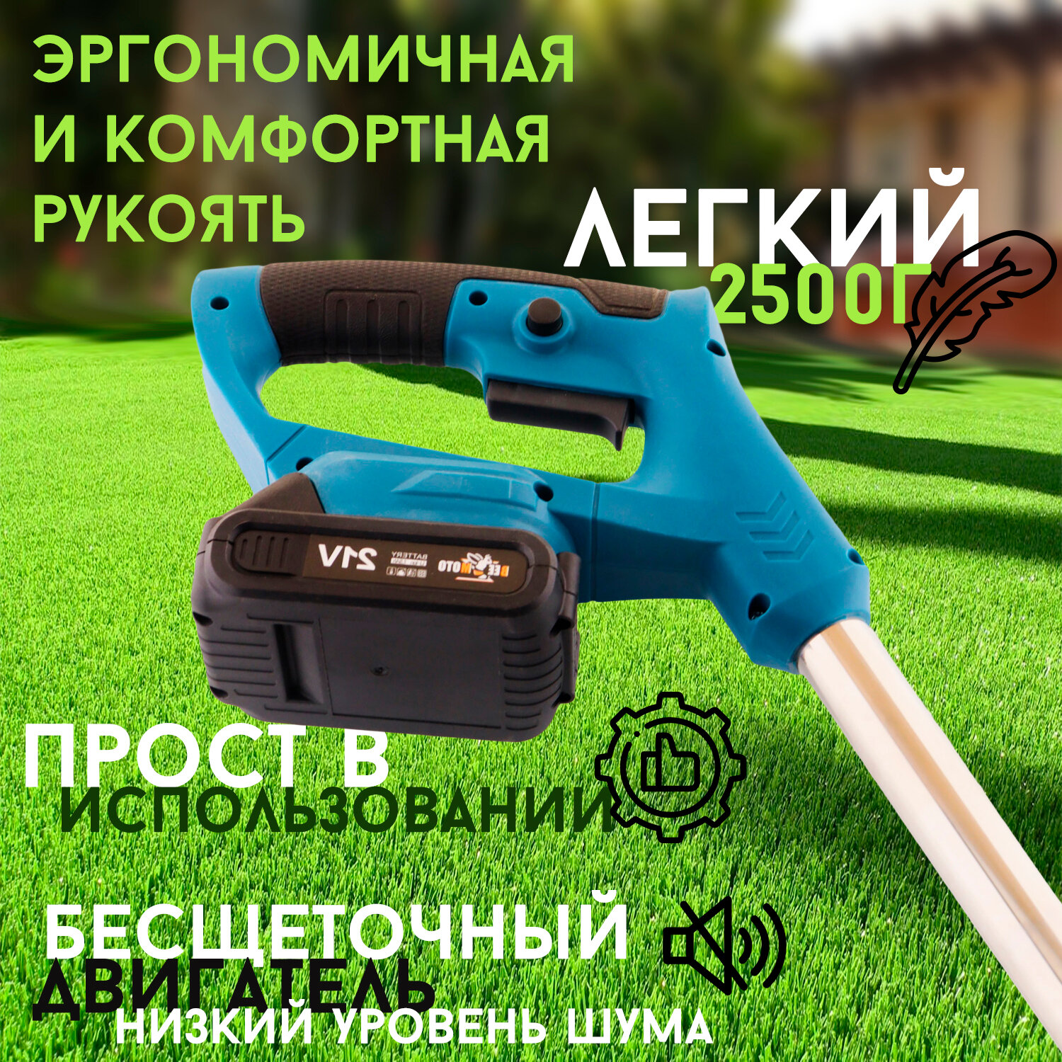 Аккумуляторный триммер для газона 21V(1.5Аh, 2акб(Li-ion), 4000/min, 1000W, щеточный, 5") "BEEZMOTO" интересное: