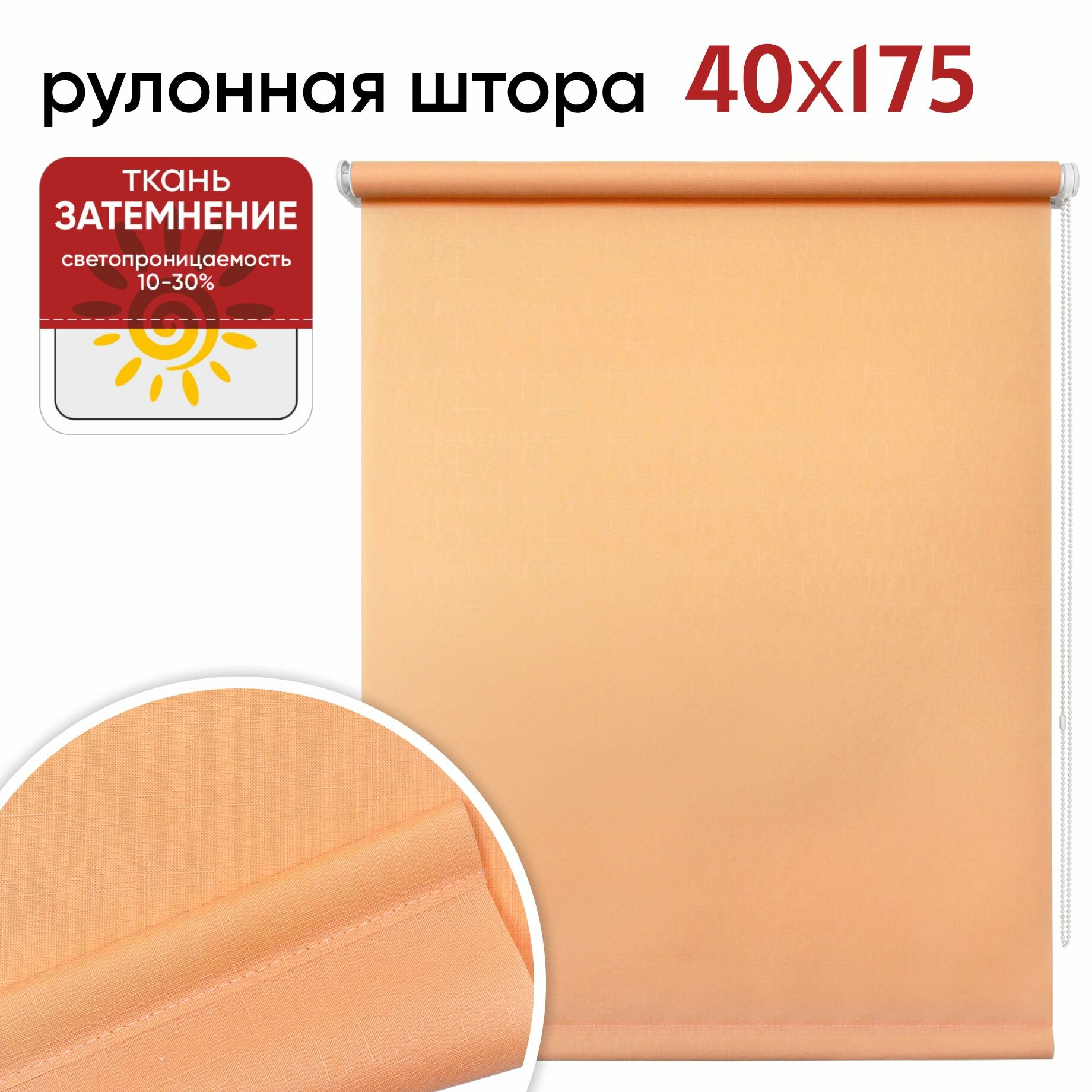 Рулонная штора УЮТ 45 высота 175 см Шантунг персик, рольштора полиэстер, затемнение 70%
