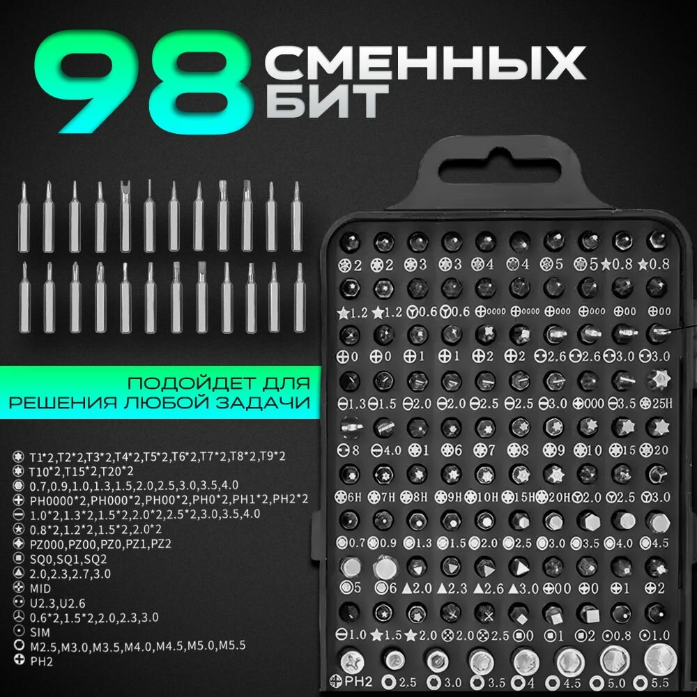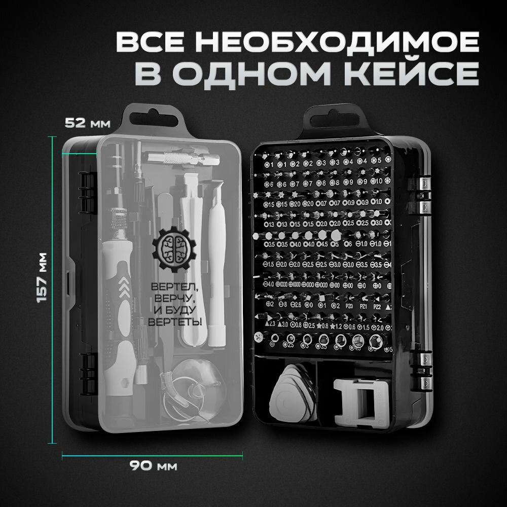 Набор отверток для точных работ в подарочном кейсе, 115 магнитных бит и инструментов для ремонта телефона, ноутбука и другой техники интересное: