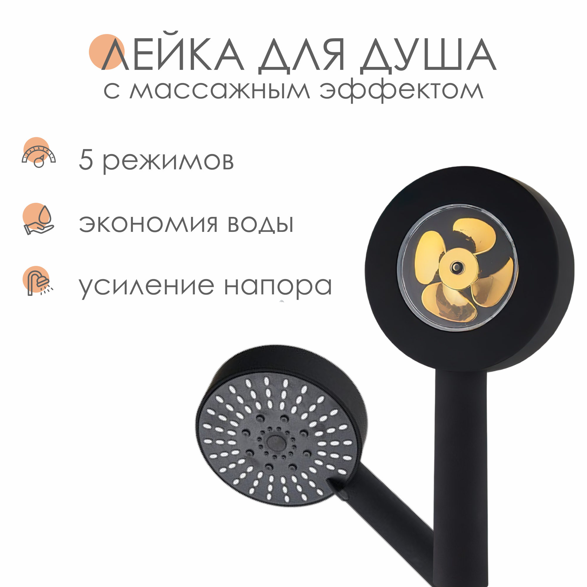 Купить Лейка для душа SimpleShop с вентилятором, большая, черная/золото