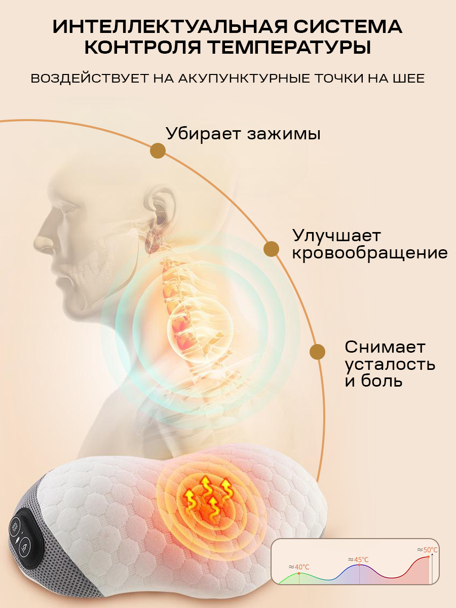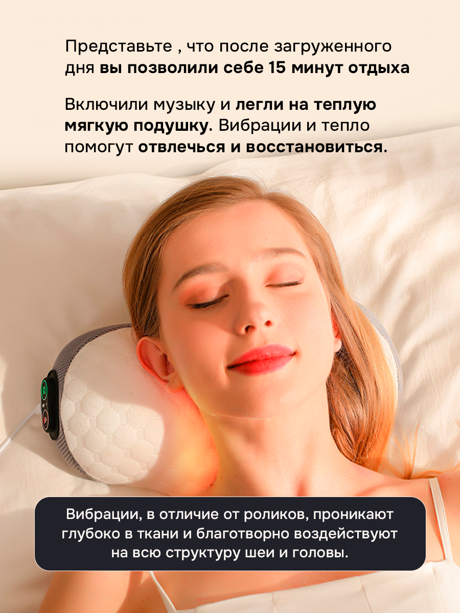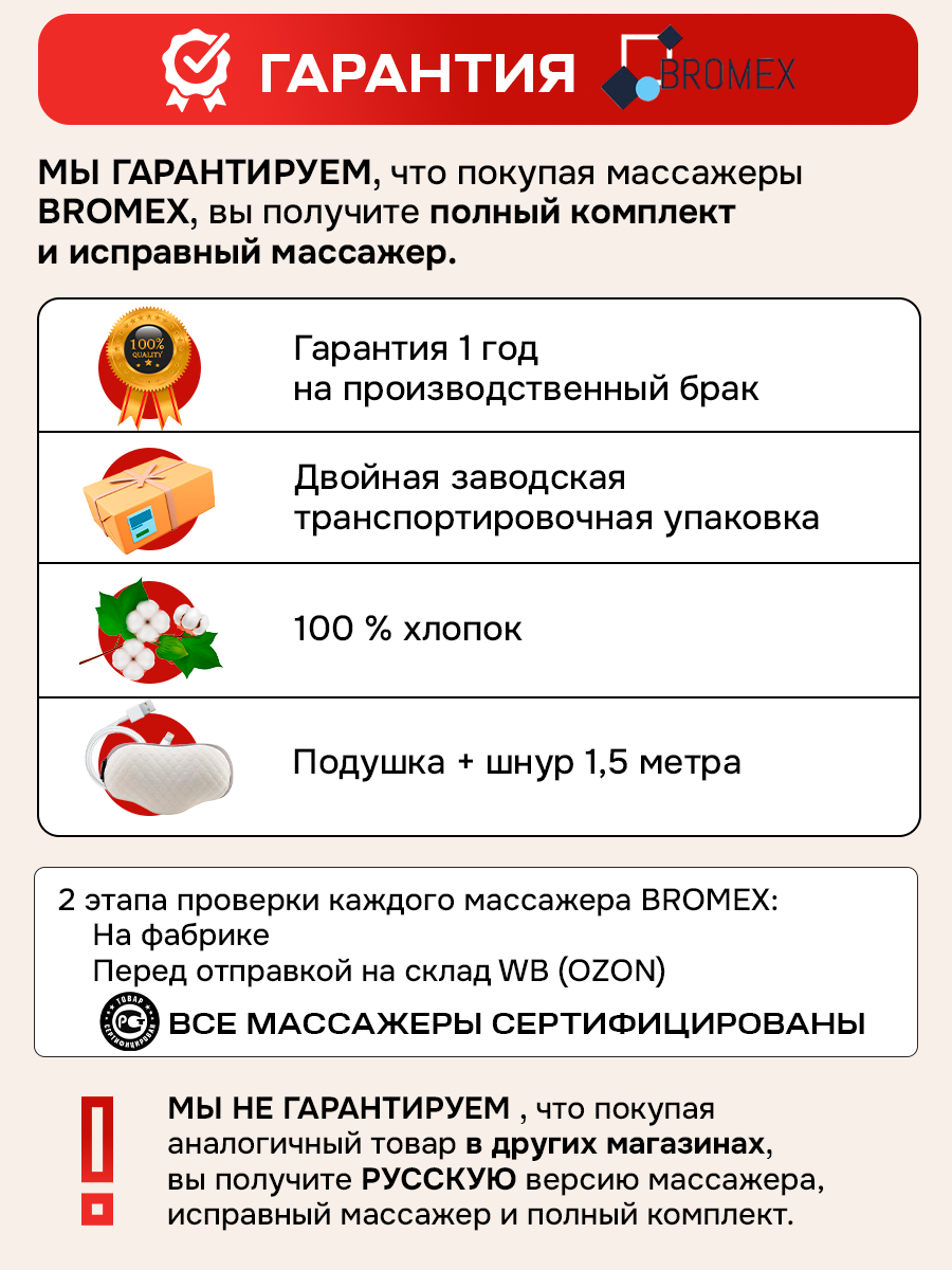 Массажная подушка с тремя режимами работы и функцией вибрации и прогрева Bromex интересное: