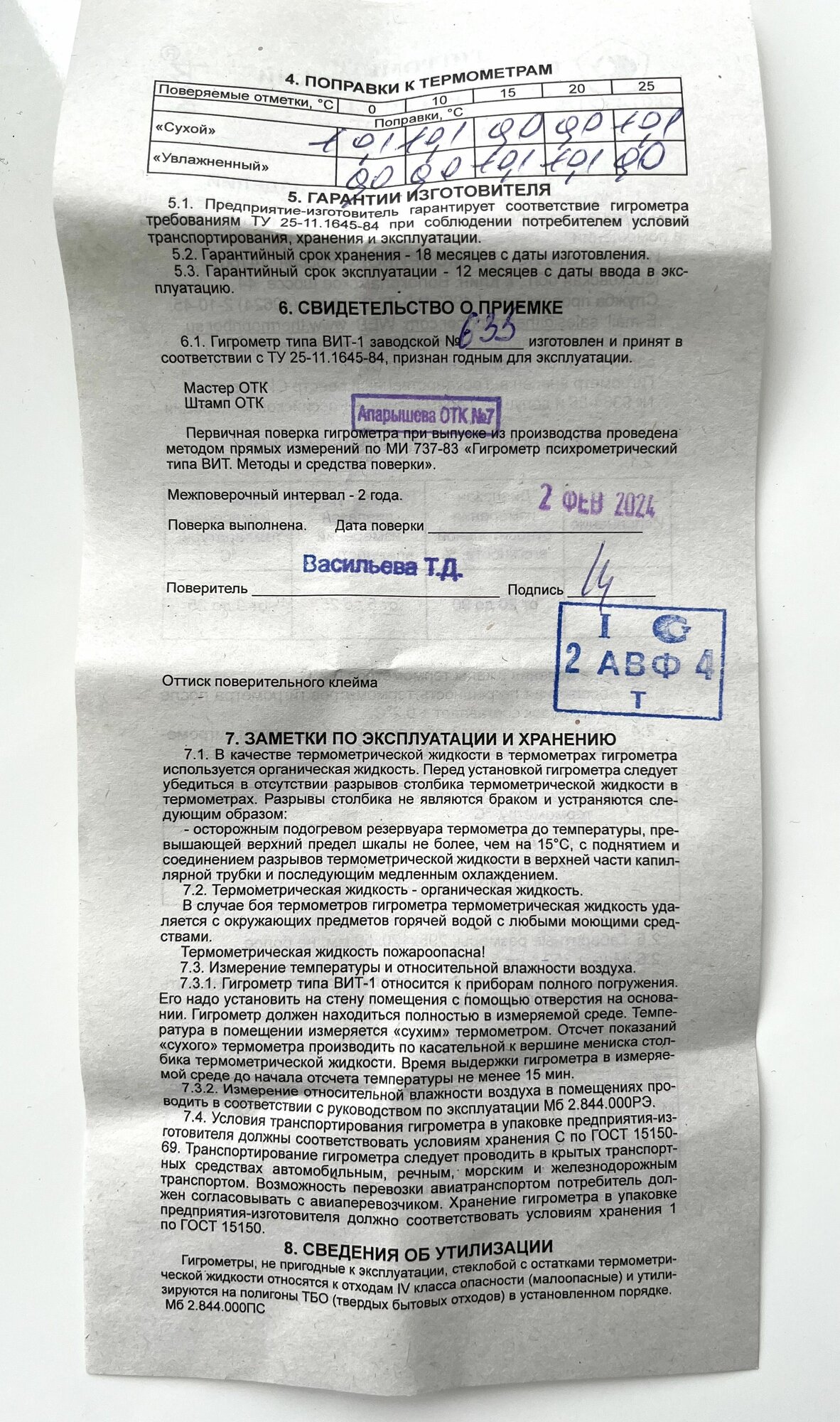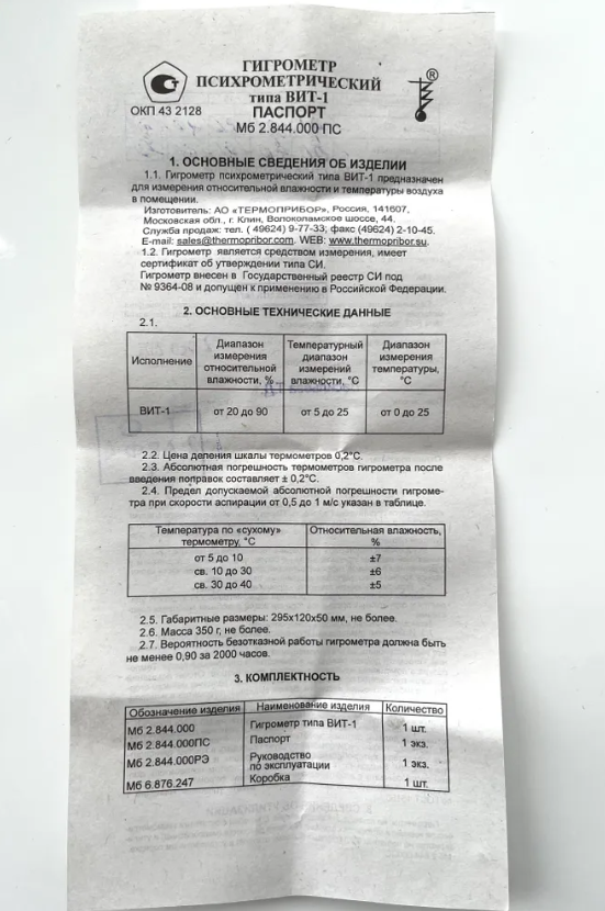 Гигрометр психрометрический типа ВИТ-1 (с поверкой), Термоприбор интересное: