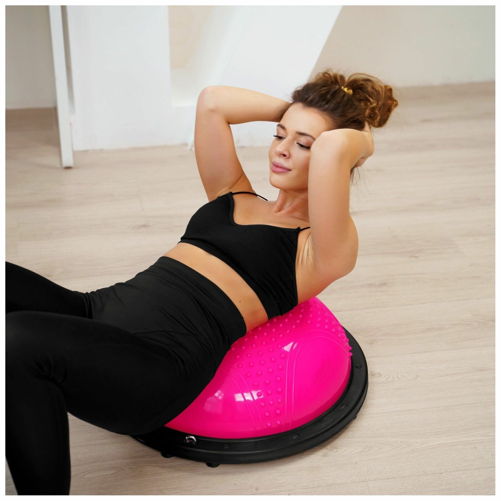 Купить Полусфера BOSU гимнастическая ONLYTOP, массажная, с насосом, 55х25 см, цвет розовый
