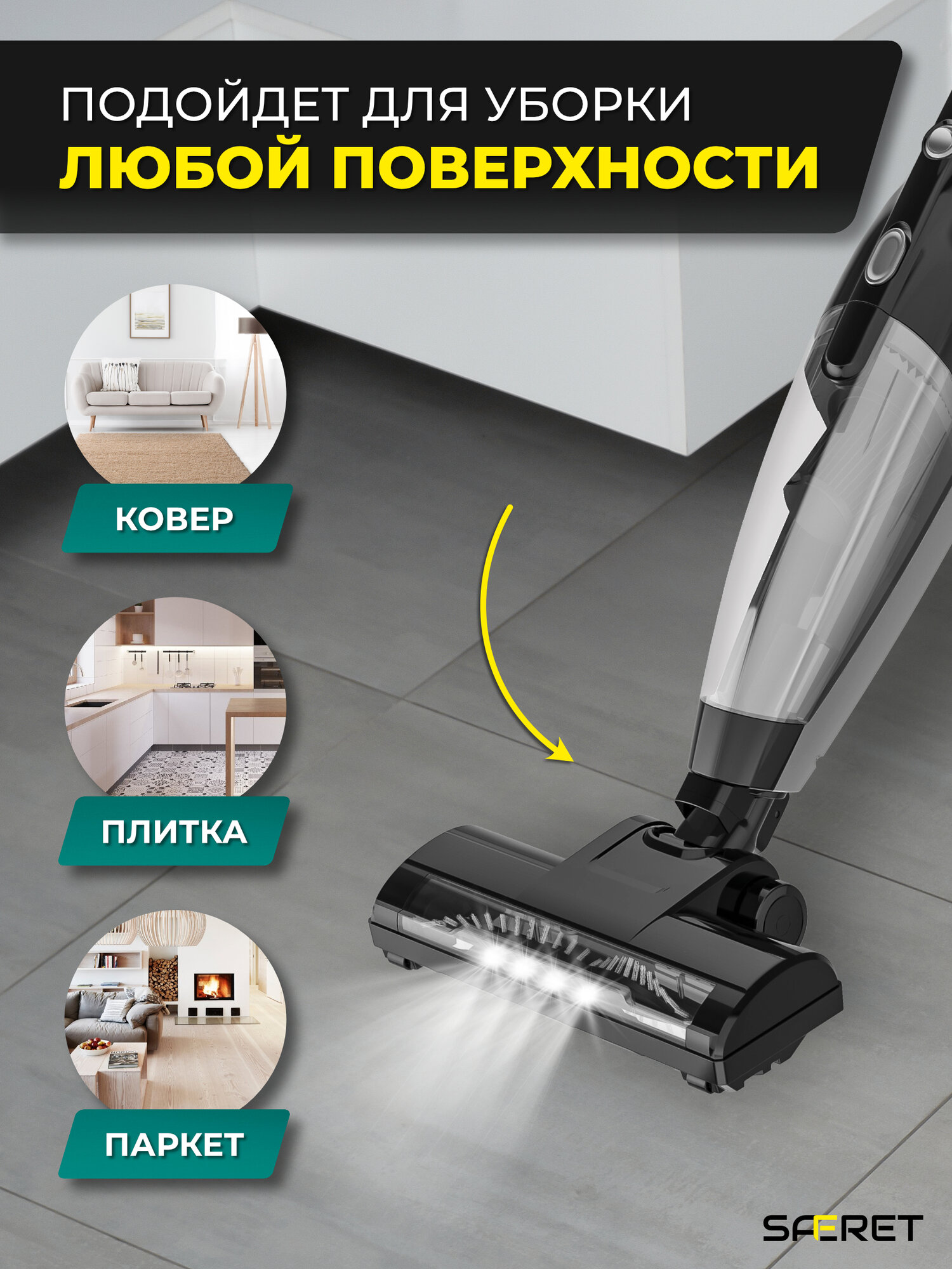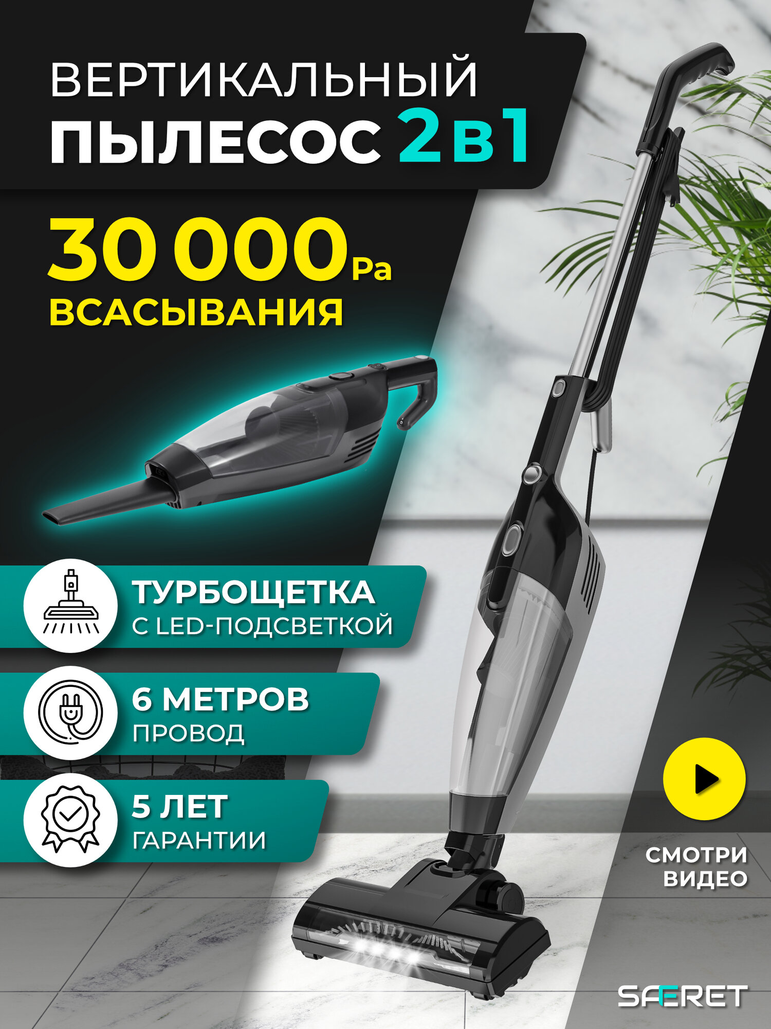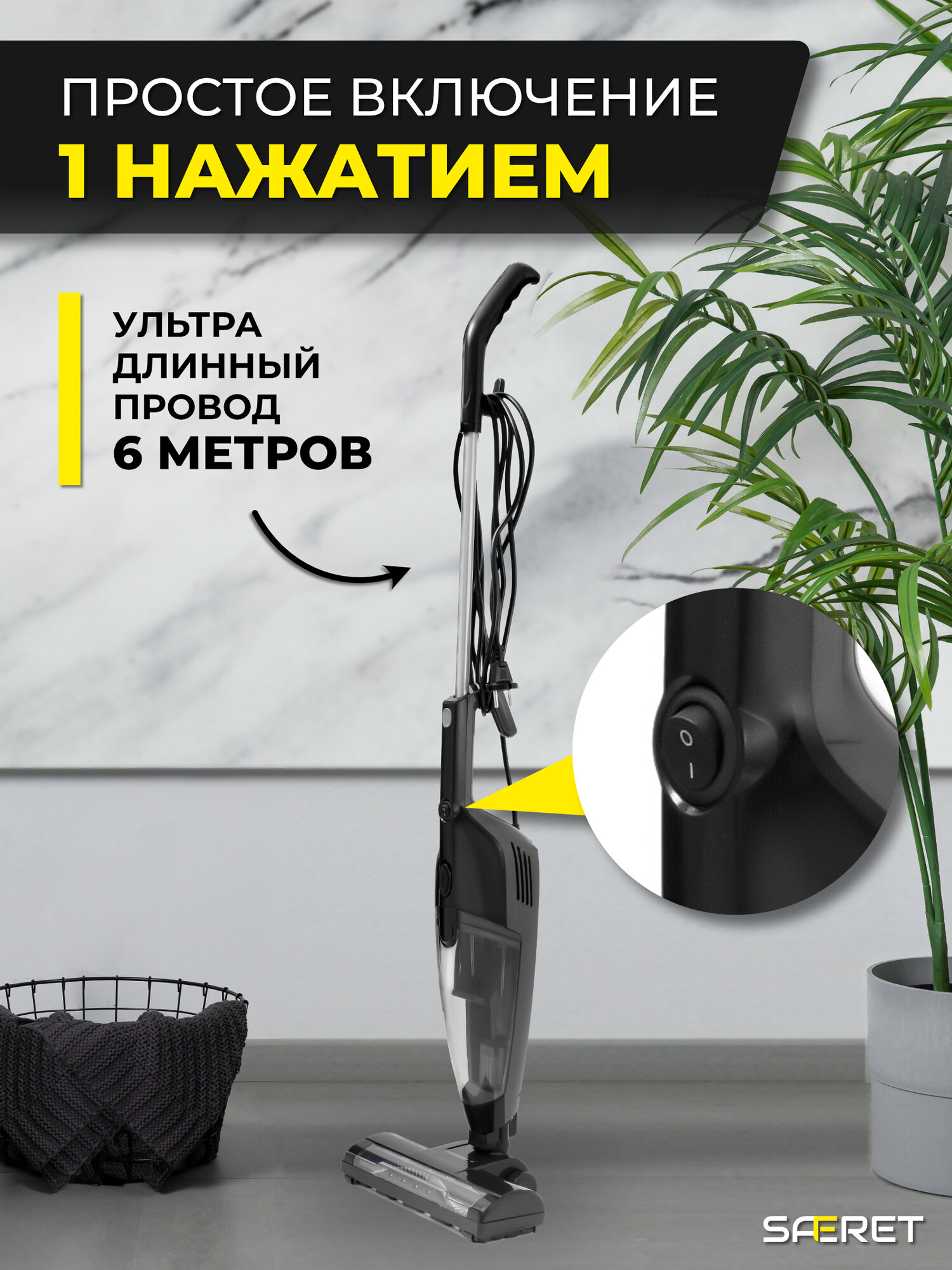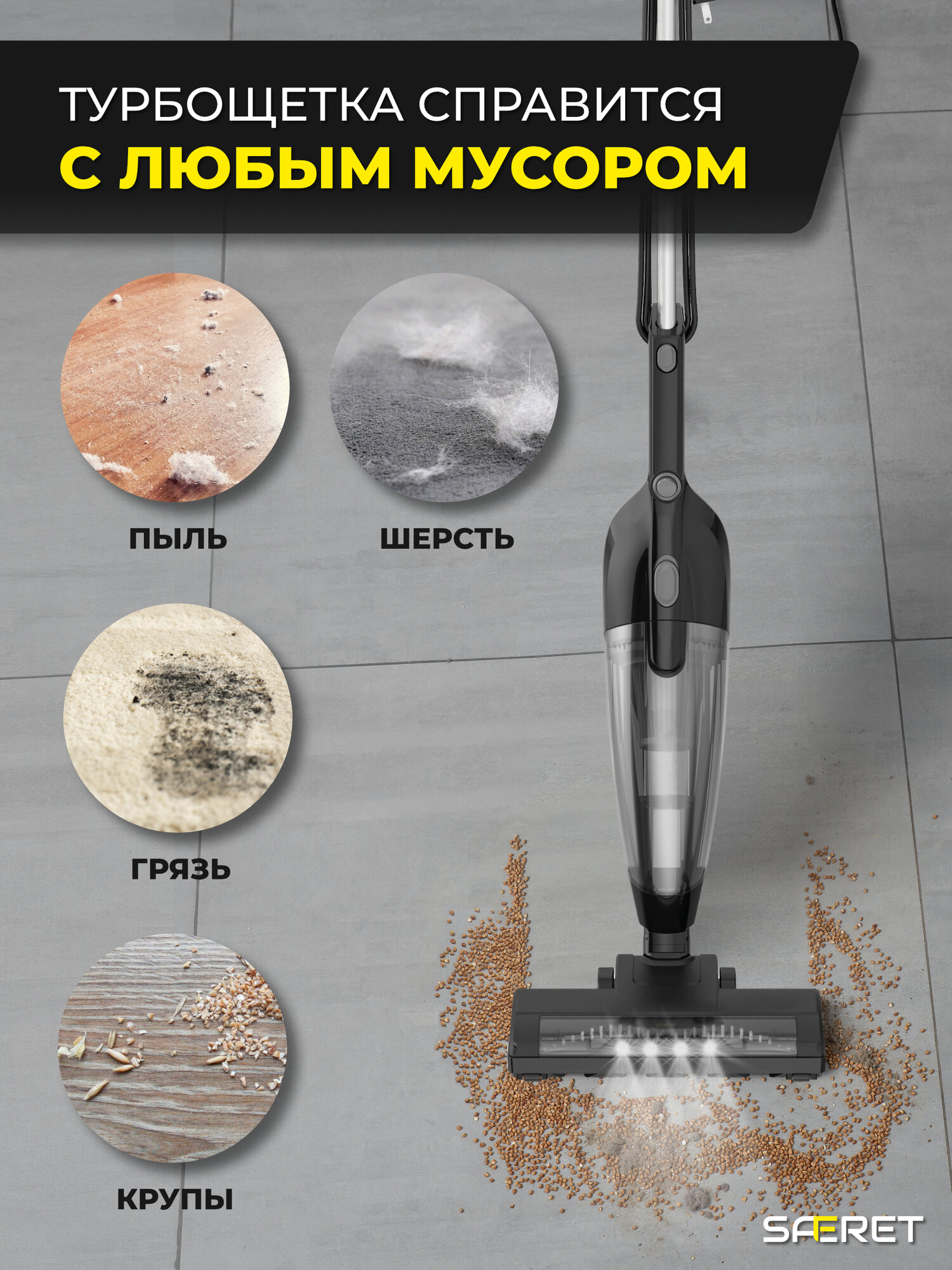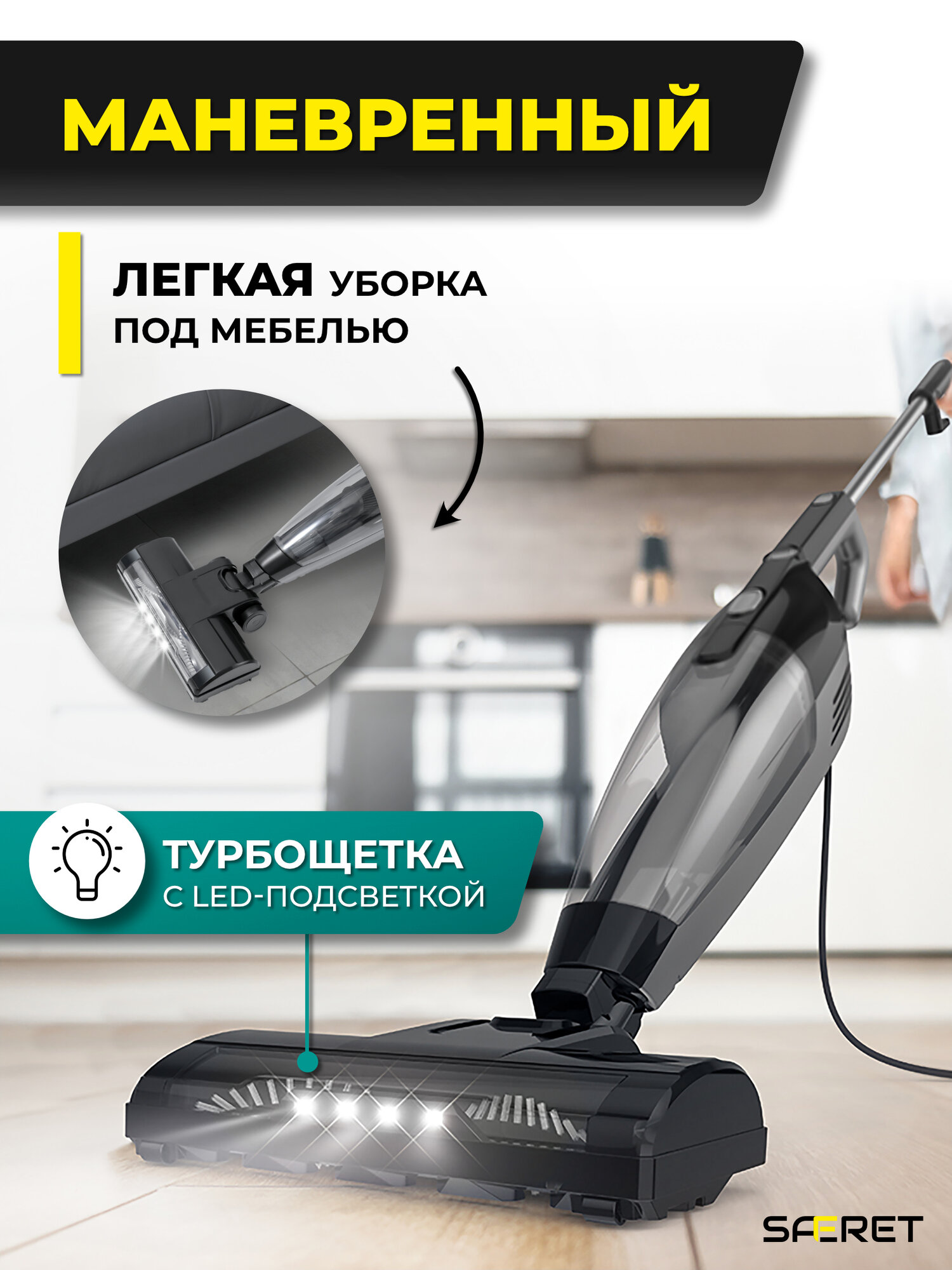 Купить Вертикальный проводной пылесос с турбощеткой и подсветкой