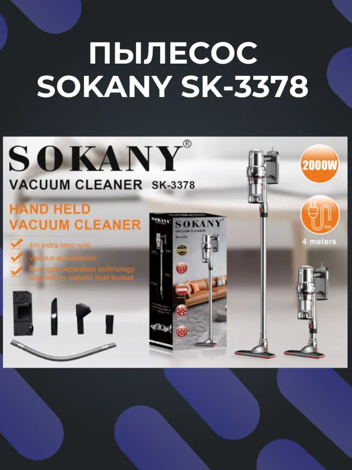 Пылесос/Вертикальный/Проводной/SOKANY SK-3378/Низкий уровень шума интересное: