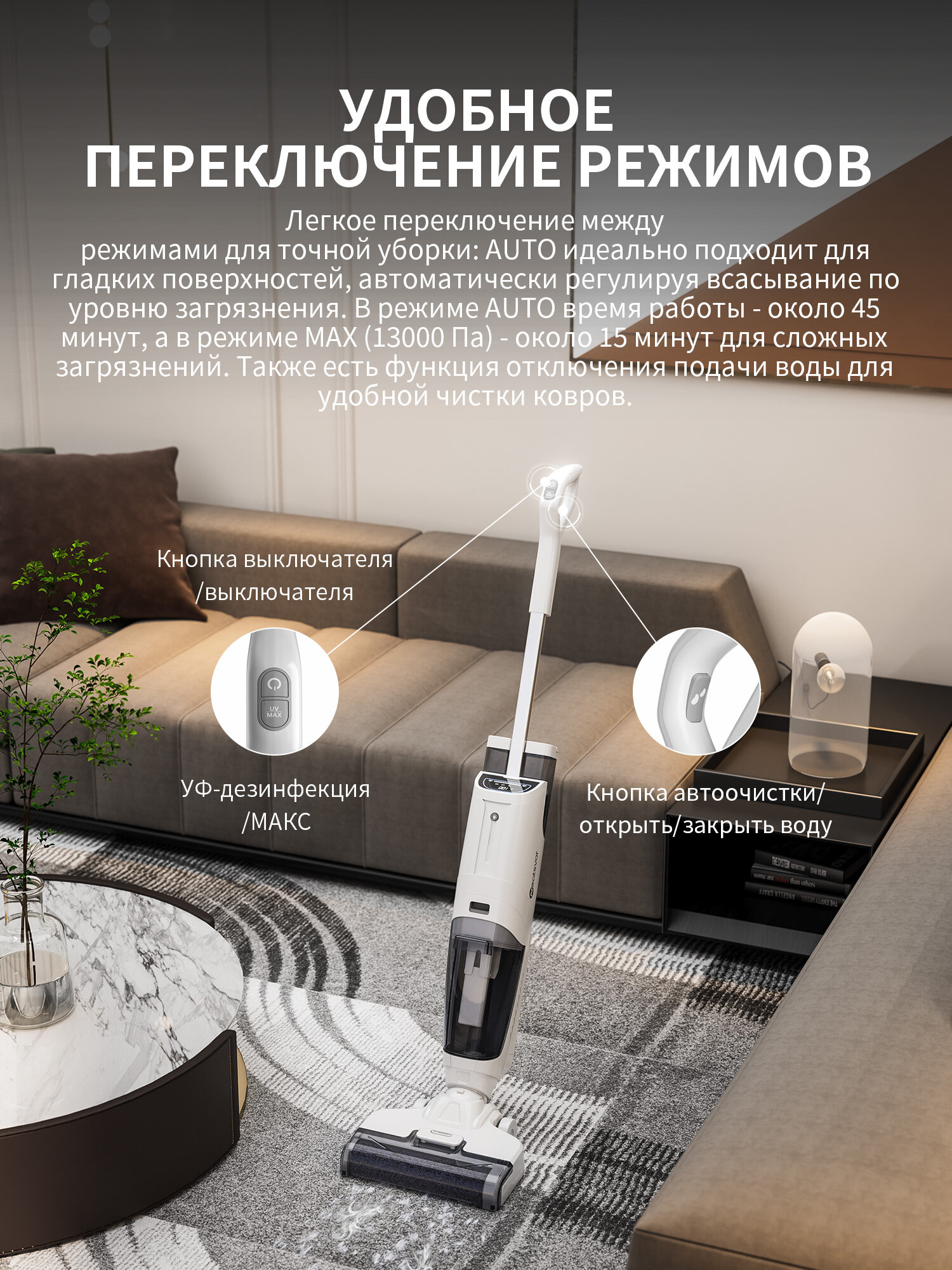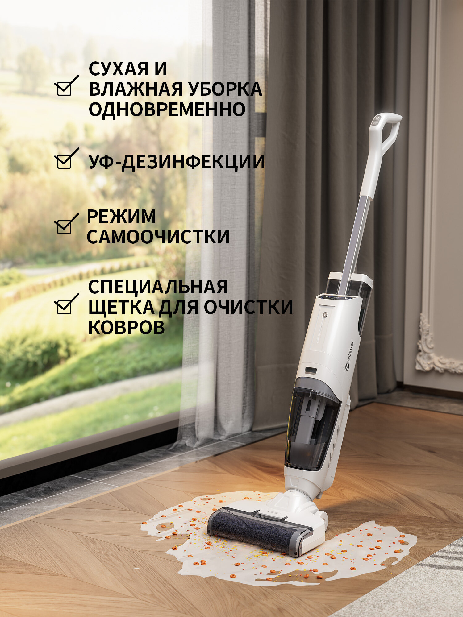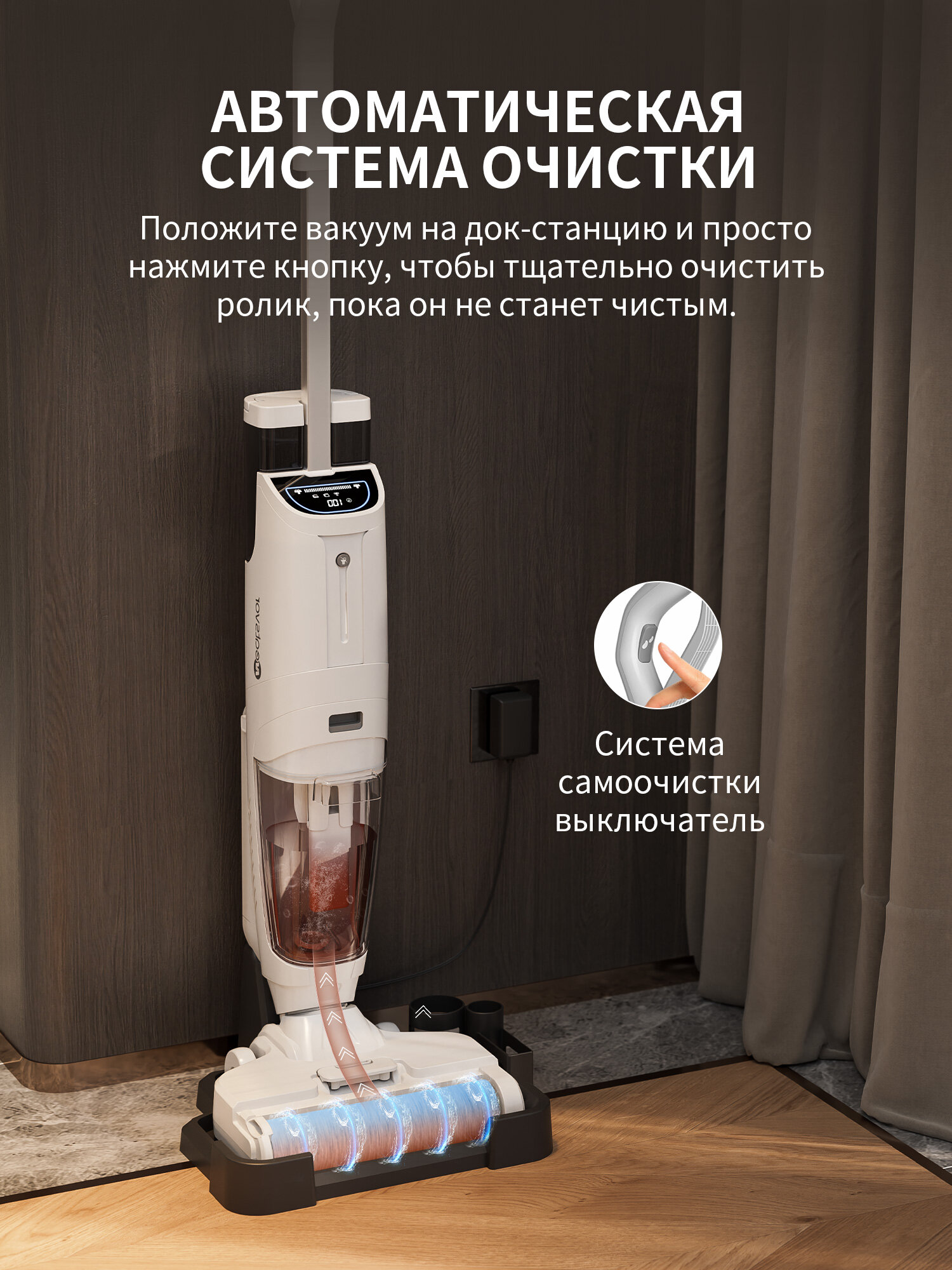 Моющий беспроводной вертикальный пылесос с самоочисткой Neatsvor T35Y, сухая/влажная уборка, белое(Русская версия) интересное: