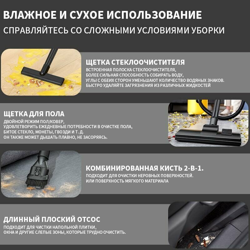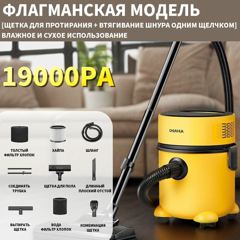 Бытовой пылесос Моющий пылесос химчистка для уборки дома, в автомобиле или офисе, 20000 Па шланг 4м ,tor, емкость 8 л, желтый, черный интересное: