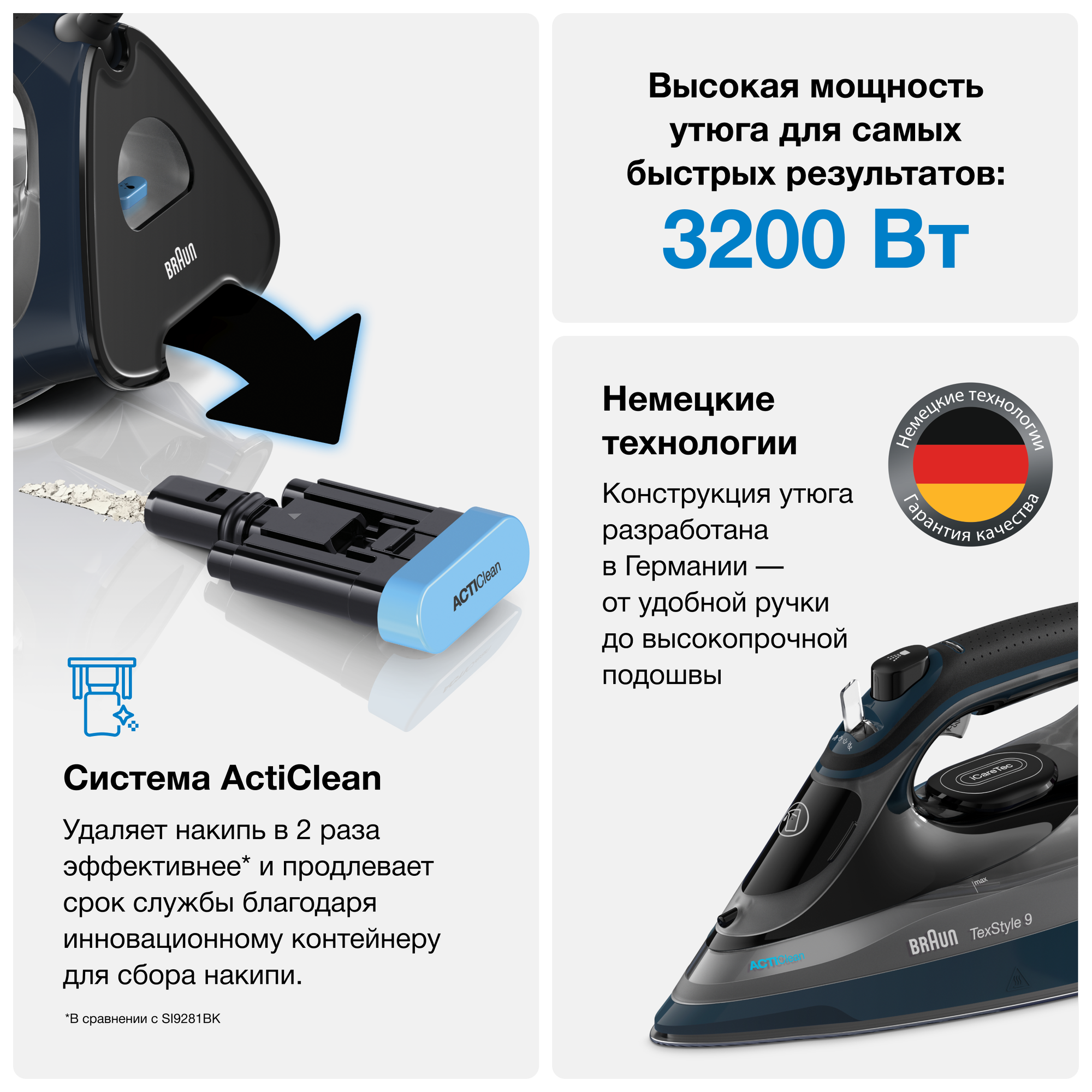 Утюг Braun TexStyle 9 SI9682DB SI, синий интересное:
