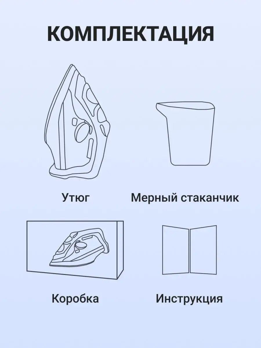 | Дополнительные функции | автоматическая регулировка пара / паровой удар / постоянная подача пара / регулировка подачи пара / регулировка температуры / сигнал автоотключения / сухая глажка |