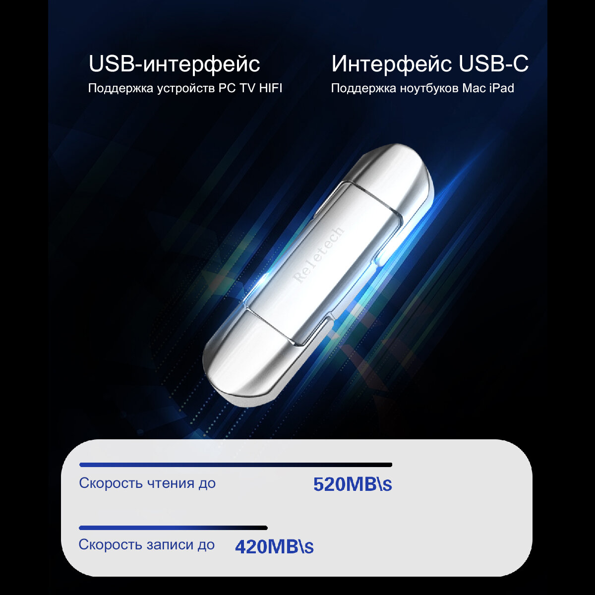 Reletech Elite7 128 ГБ 2In1 USB3.2 / Type-C Портативный Внешние SSD-диски Чтение до 480 МБ Совместимый PS5 Xbox Ноутбук Сотовый телефон интересное: