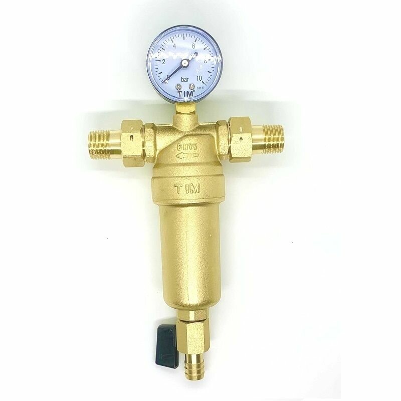 Фильтр самоочищающийся с манометром ,металический корпус 1/2'' TIM арт: JH-1001 + сетка интересное:
