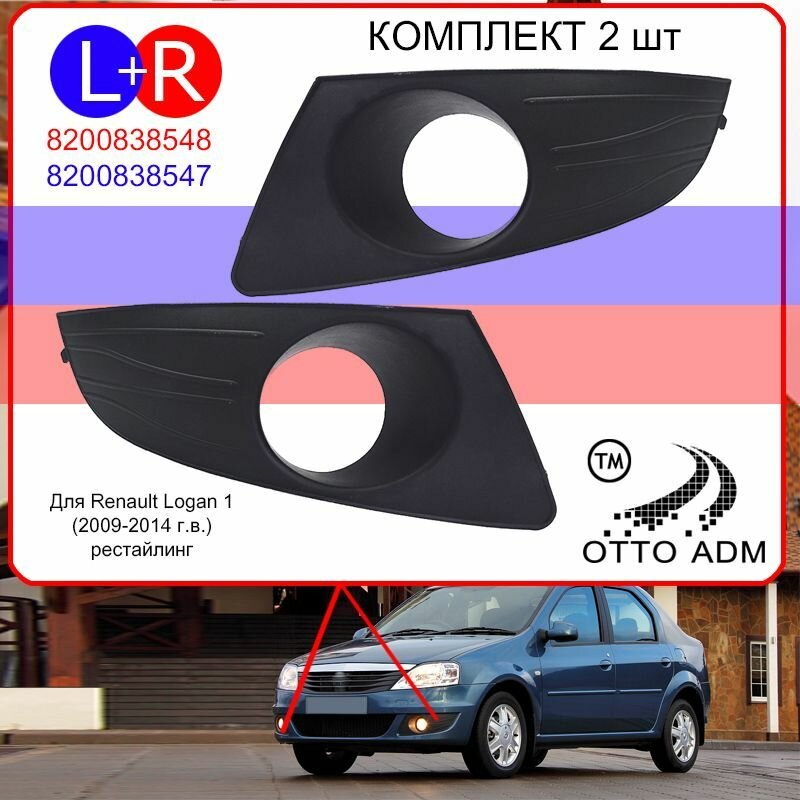 Накладка ПТФ левая и правая для Рено Логан, Решетка, окантовка, решетка в бампер комплект для Renault Logan 1 2009-2014 рестайлинг 8200838547 интересное: