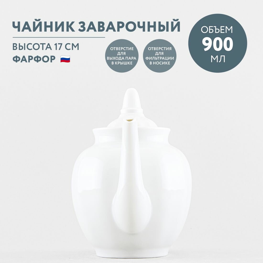 Чайник заварочный фарфоровый, объем 900 мл., Дулевский фарфоровый завод, Белый