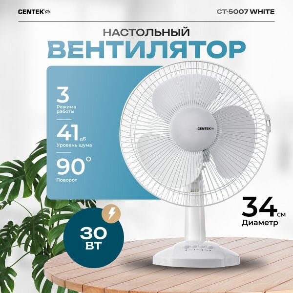Вентилятор Centek CT-5007 настольный (белый) 30 Вт