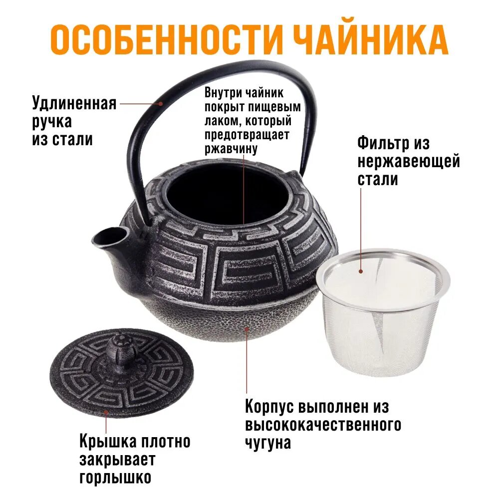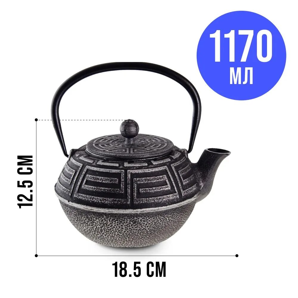 Чайник заварочный чугунный Mayer&Boch / Майер&Бош МВ23697 черный с фильтром 1.1л / посуда для чая