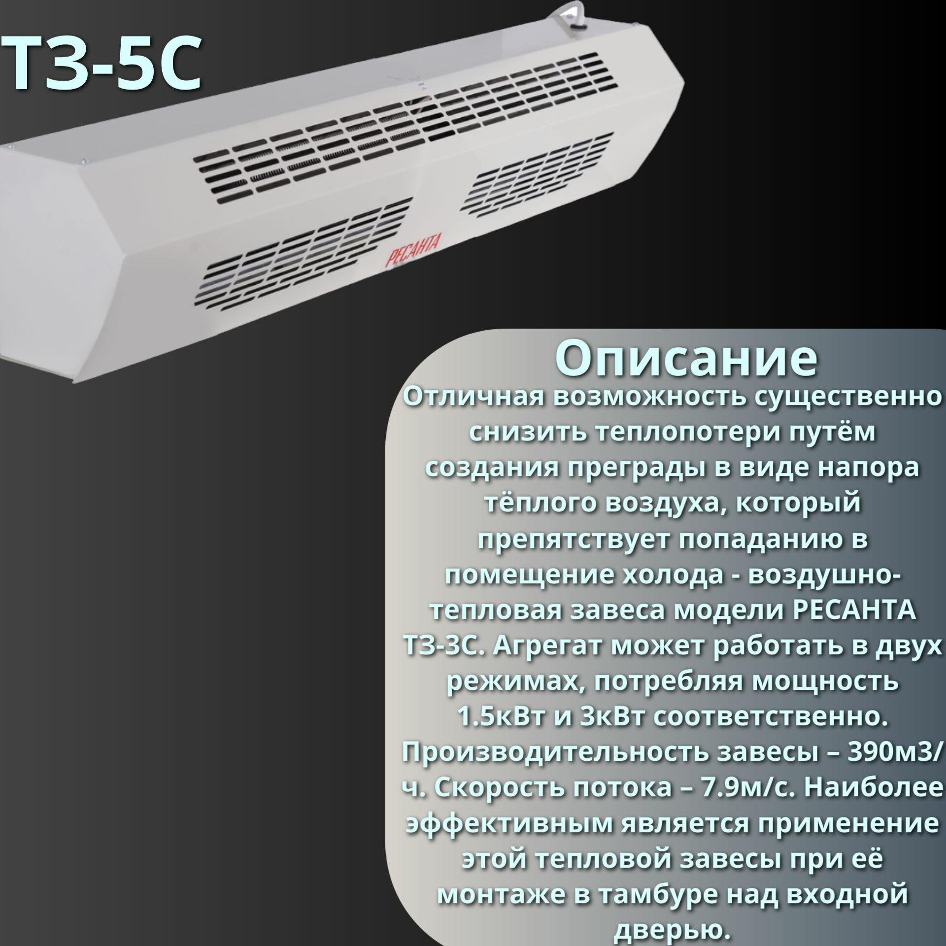 Завеса тепловая ТЗ-3С 3кВт Ресанта РЕСАНТА 67/6/1 (1 шт.)