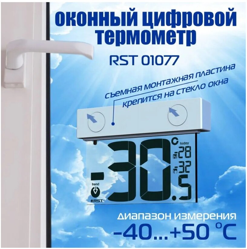 Ниже Вы можете прочитать отзывы на Термометр электронный уличный RST 01077, белый, ознакомится с подробными характеристиками, посмотреть интересные обзоры и фотографии на Термометр электронный уличный RST 01077, белый.