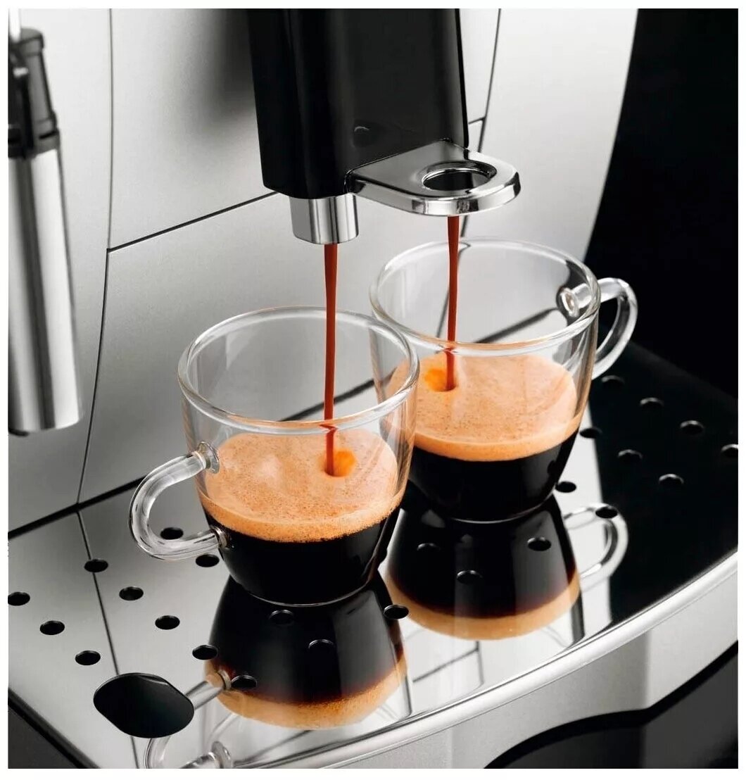 Фирму советовали друзья, в итоге выбирали между 2мя моделями Esam 2600 и этой. По отзывам определились на эту, по цене она оказалась дешевле. Придирчива к жесткости воды, в комплекте идет фильтр для смягчения, который нужно менять раз в 2 мес. У нас вода мягкая, поэтому мы пользуемся без фильтра. В отзывах писали, что реагирует на перепады напряжения, нас эта проблема не коснулась. По шумности сравнить могу только с электрической кофемолкой: громкость одинаковая, но звук от машины приятнее. В комплекте есть жидкость от накипи, фильтр для смягчения воды, индикатор для проверки жесткости воды. Минусы: чаще пьем кофе, много денег уходит на покупку зерен)) Плюсы: кофе готовит моментально, не надо ждать, пока чайник закипит (утром это важно!), максимум удовольствия от распития кофе. Капучинатор делает хорошую молочную пенку, но чистить его надо вручную после каждого использования, что не очень удобно. |