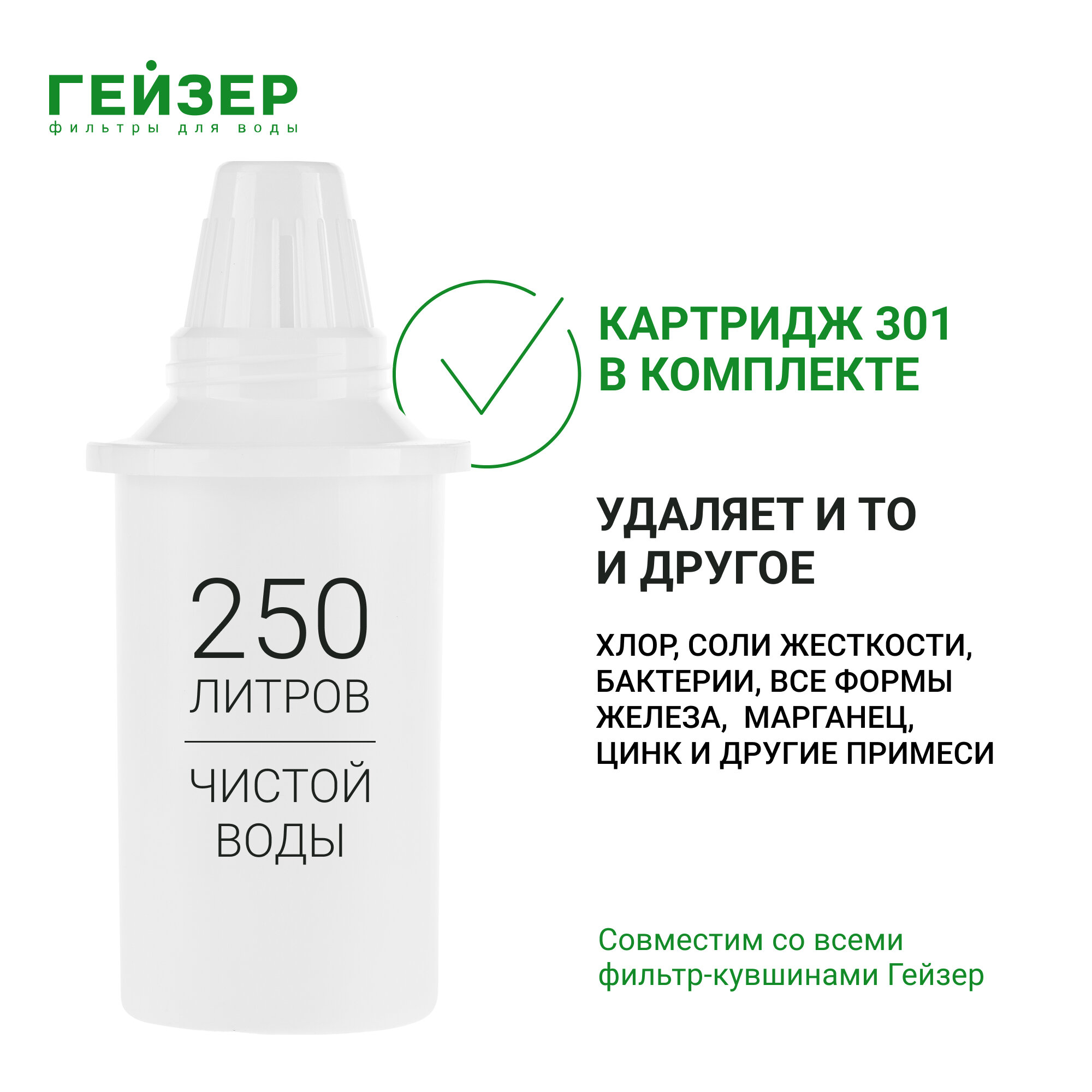 Фильтр-кувшин Гейзер Вега, ресурс картриджа 350 л, применяется для очистки водопроводной и скважинной воды, 62040