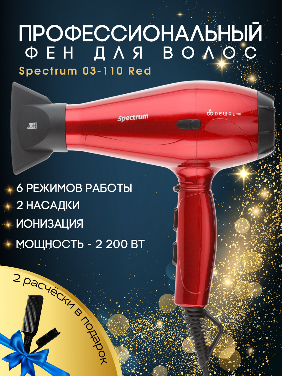 Профессиональный фен для волос красный Spectrum 03-110 Red, 2200 Вт. Dewal