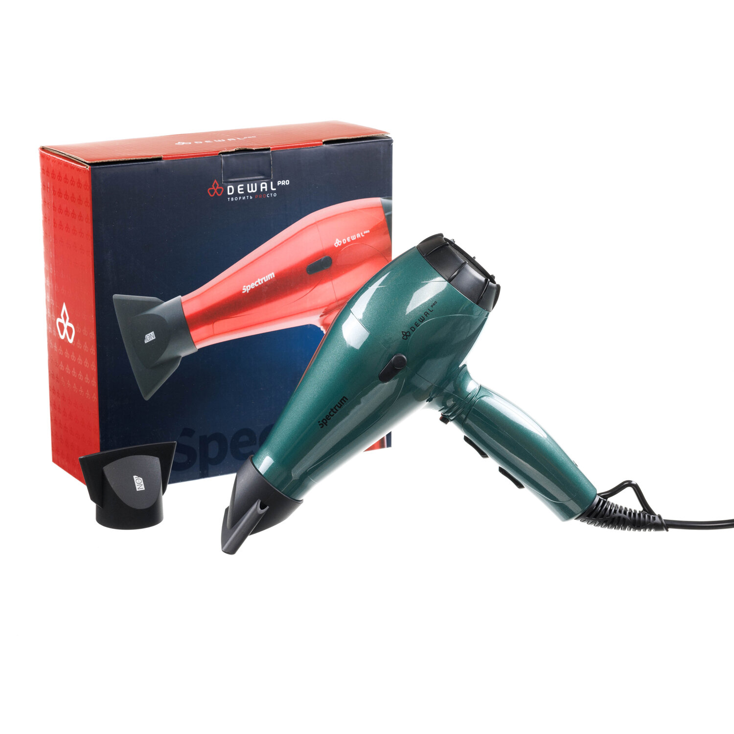 Купить Фен DEWAL SPECTRUM, изумрудный, вес 600гр, 2200Вт, ионизация, 2 нас, провод 3м