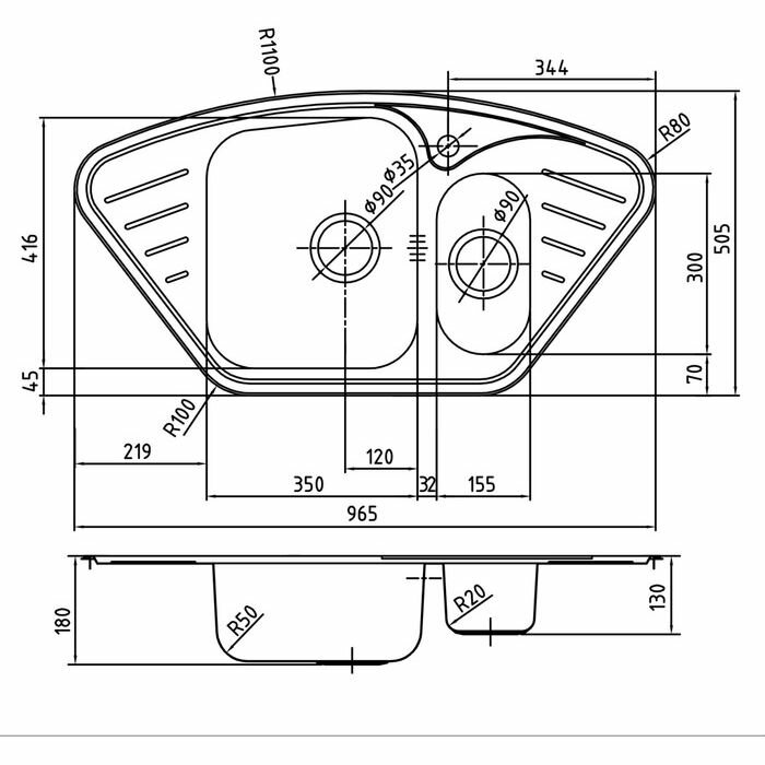 Мойка из нержавеющей стали IDDIS Strit S STR96PCi77 полированная угловая 965*505 1,5 чаши