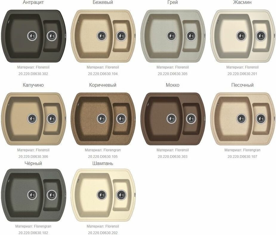 Florentina кухонная мойка нире 630К Жасмин 20.220.D0630.201