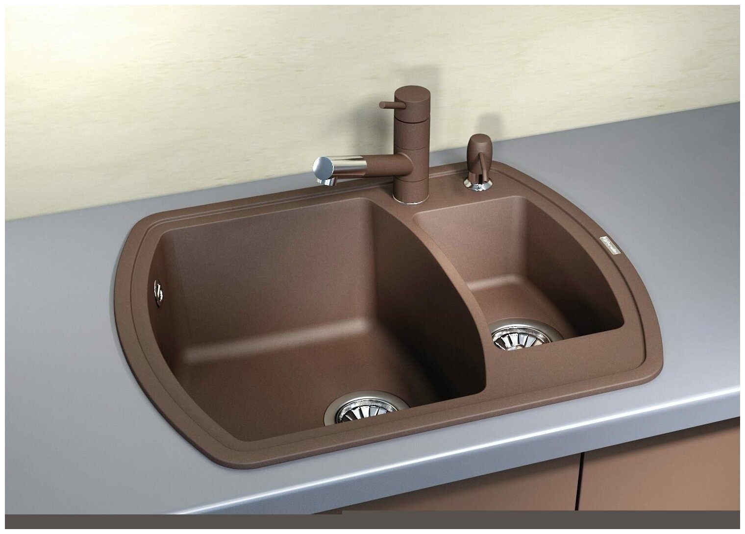 Мойка кухонная Florentina Нире с дополнительной чашей мокко 20.220.D0630.303
