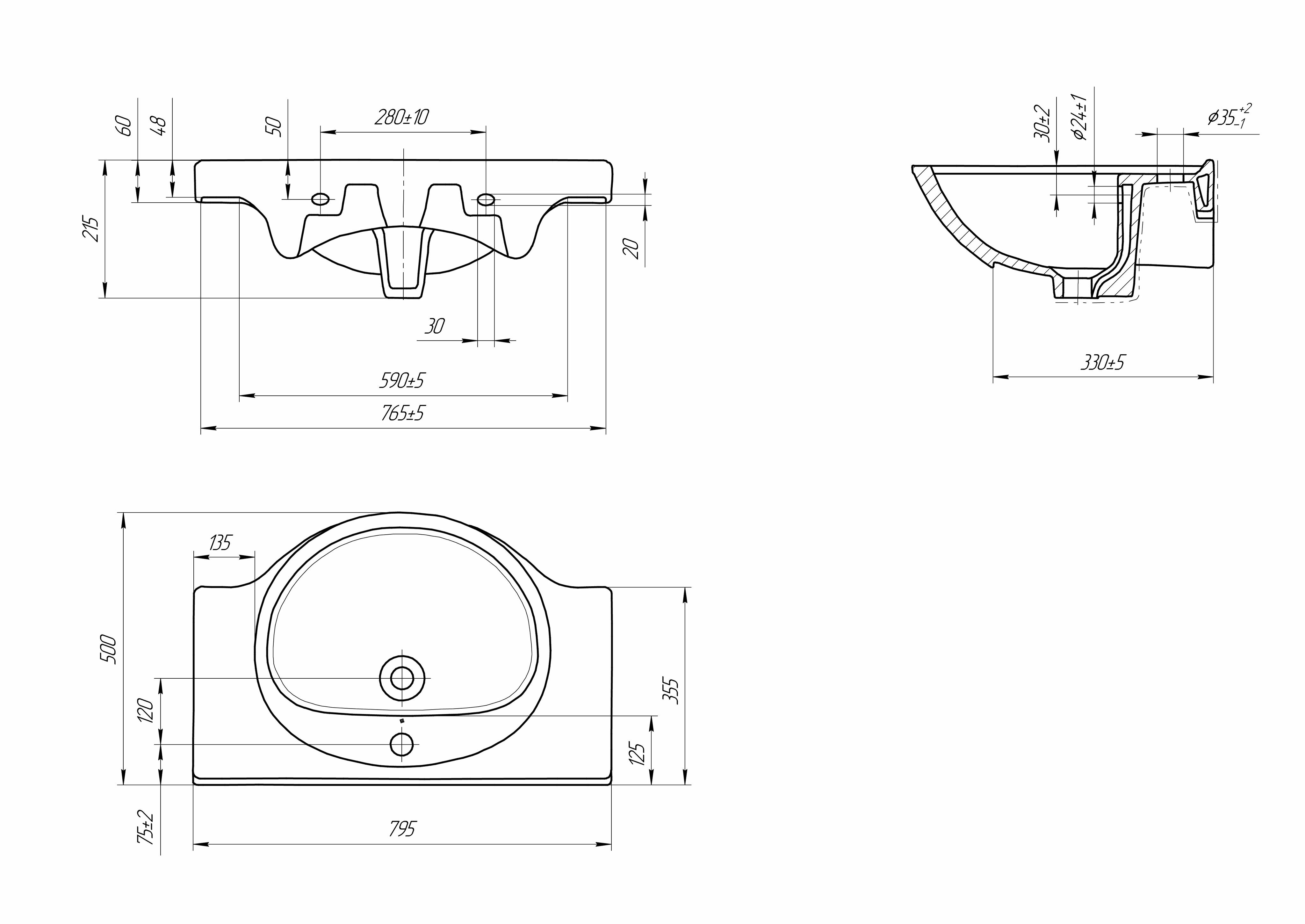 | Расположение отверстия под смеситель | в центре |