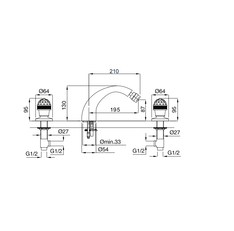 Смеситель для биде на 3 отв., бронза Migliore AXO SWAROVSKI ML.AXO-625F.BR