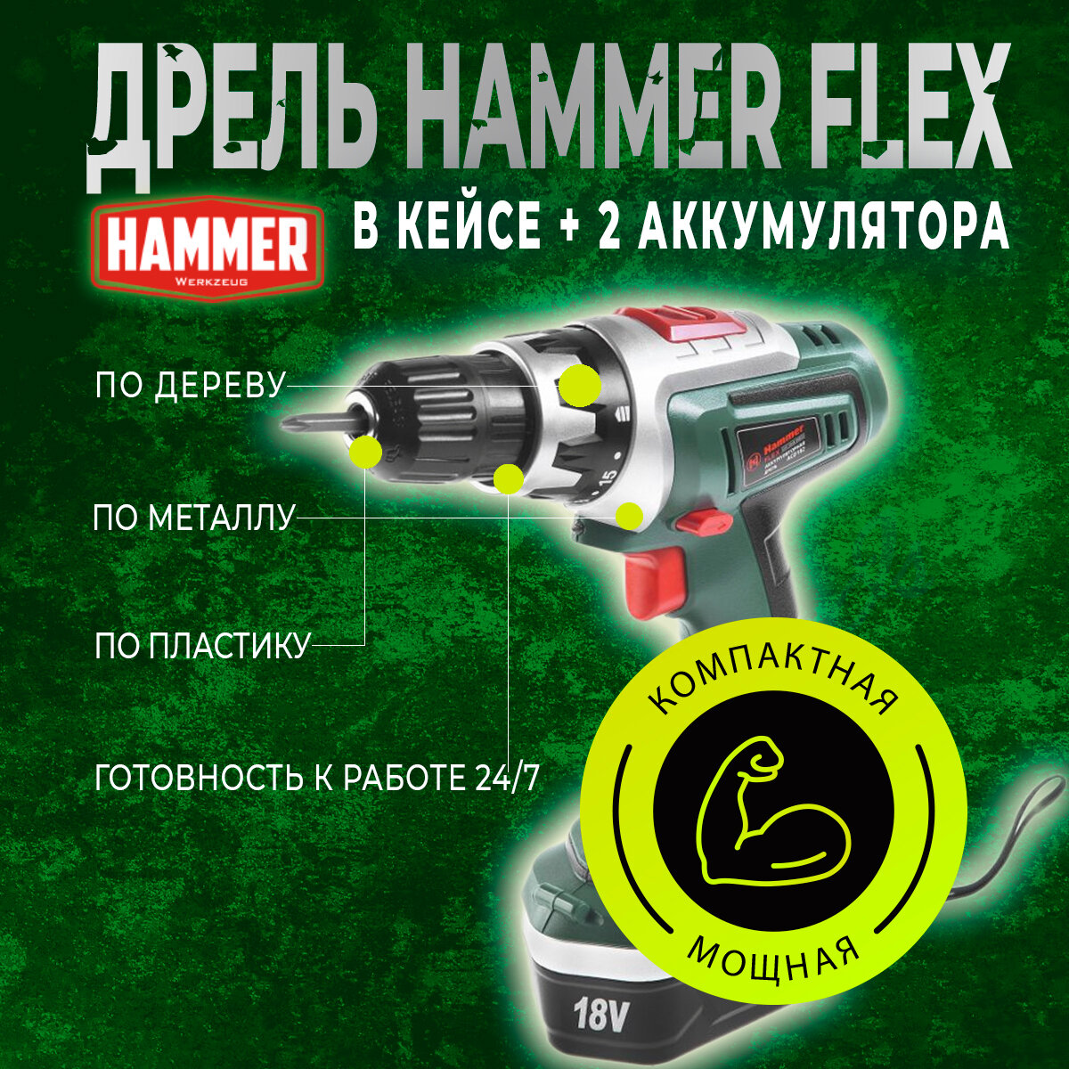 Аккумуляторная дрель Hammer Flex ACD182 интересное: